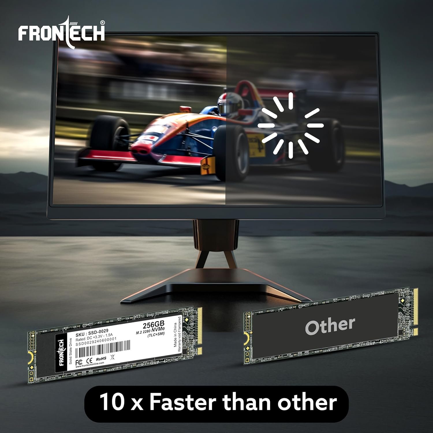 Introducing the Frontech SSD, the ultimate storage solution that combines lightning-fast speeds and ample storage capacity. Experience the power of solid-state technology and unleash the full potential of your device. With its impressive reading speed of 500Mbps and writing speed of 480Mbps, this SSD takes data transfer to a whole new level. Say goodbye to long loading times and laggy performance – now you can enjoy instant access to your files, applications, and multimedia content. Have an ultra fast SSD with M.2 2280 NVMe (TLC+SMI) for your PC that can give you excellent performance with its additional capabilities that is added to your system With a massive 500Mbps of reading speed and up to 480Mbps of writing speed, transfer heavy files without any pushing your system to its limit. Comes with a huge storage capacity of 256GB that can easily store your files without any corruption in the system. Solid and durable body that can effortlessly fit in your PC system or laptop with a low energy consumption Its silent operation lets you focus on completing your task without any disturbance. Experience no heating thanks to its cool working function that perform without any overload