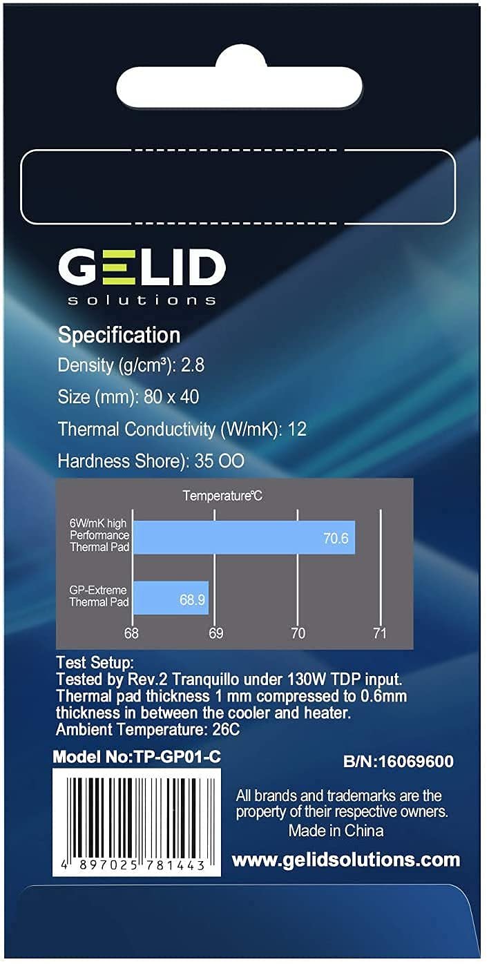 Gelid Solutions GP-Extreme 12W-Thermal Pad 80x40x1.5mm. Excellent Heat Conduction, Ideal Gap Filler. Easy Installation