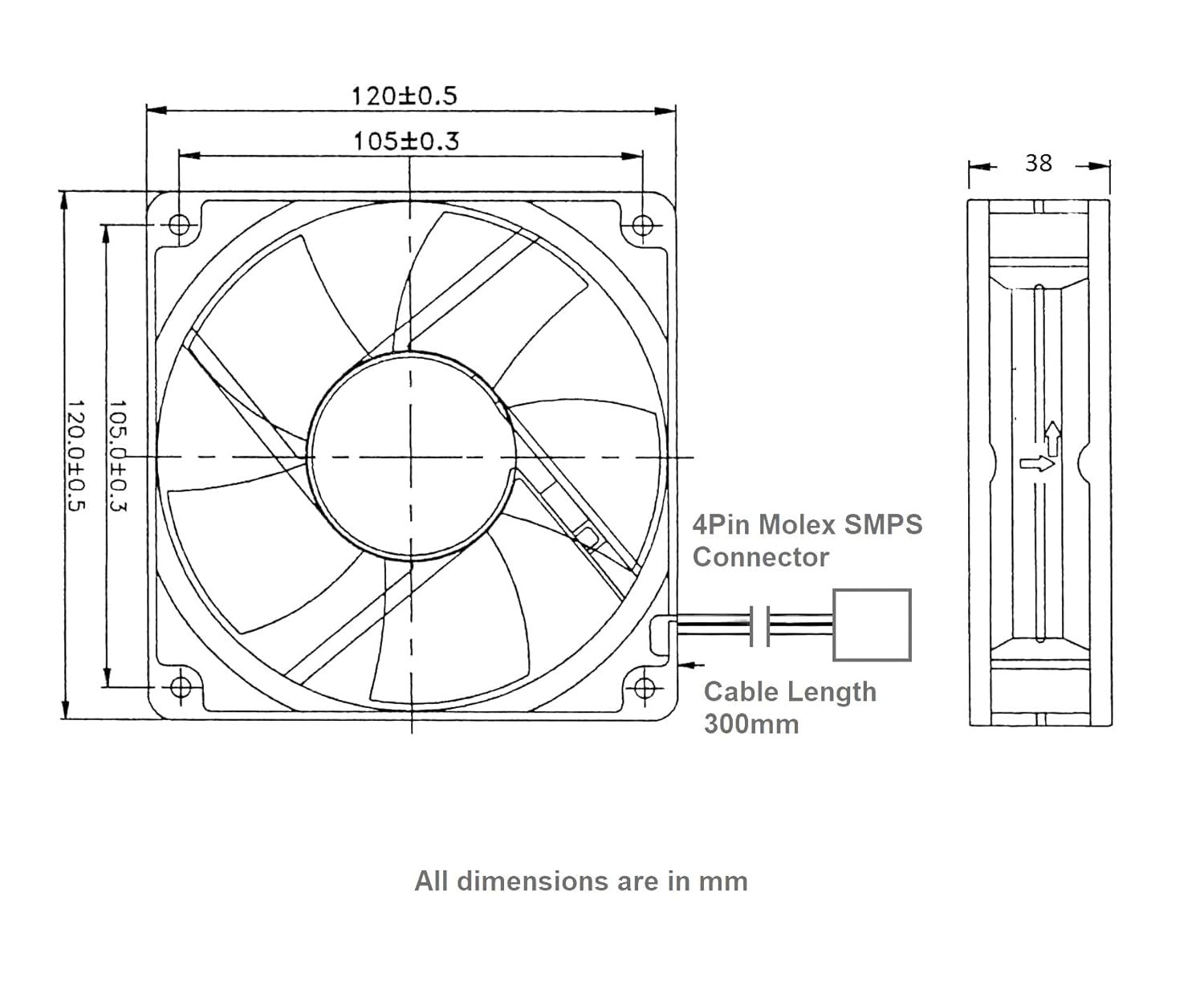 Build with 4 Pin MOLEX SMPS Connecter, Cable Length 6inch to 12inch