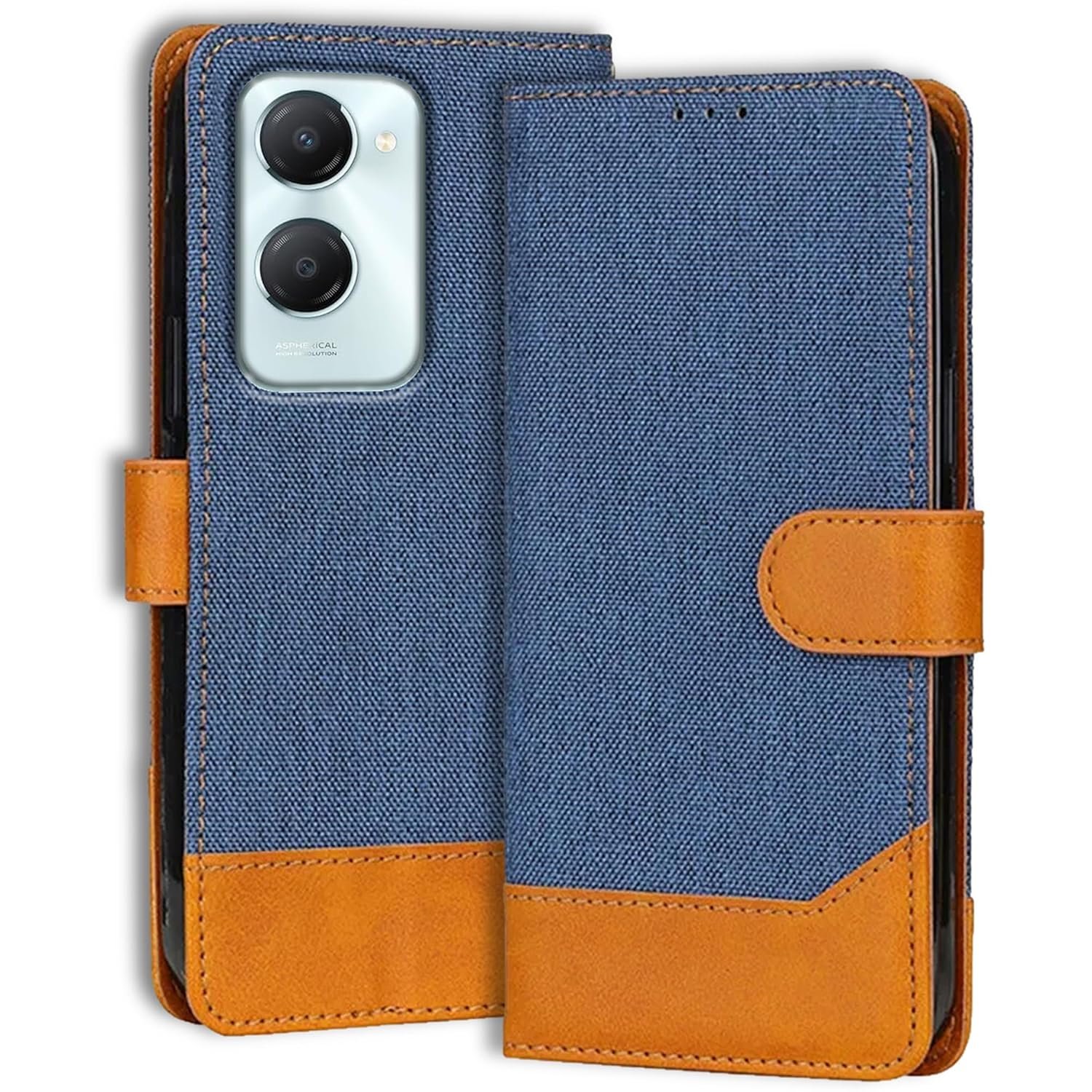 Premium 360° Protection: Safeguard your iQOO Z9 Lite 5G with our shockproof back flip cover. The dual-tone denim leather design offers scratch resistance and defense against unexpected drops and impacts.