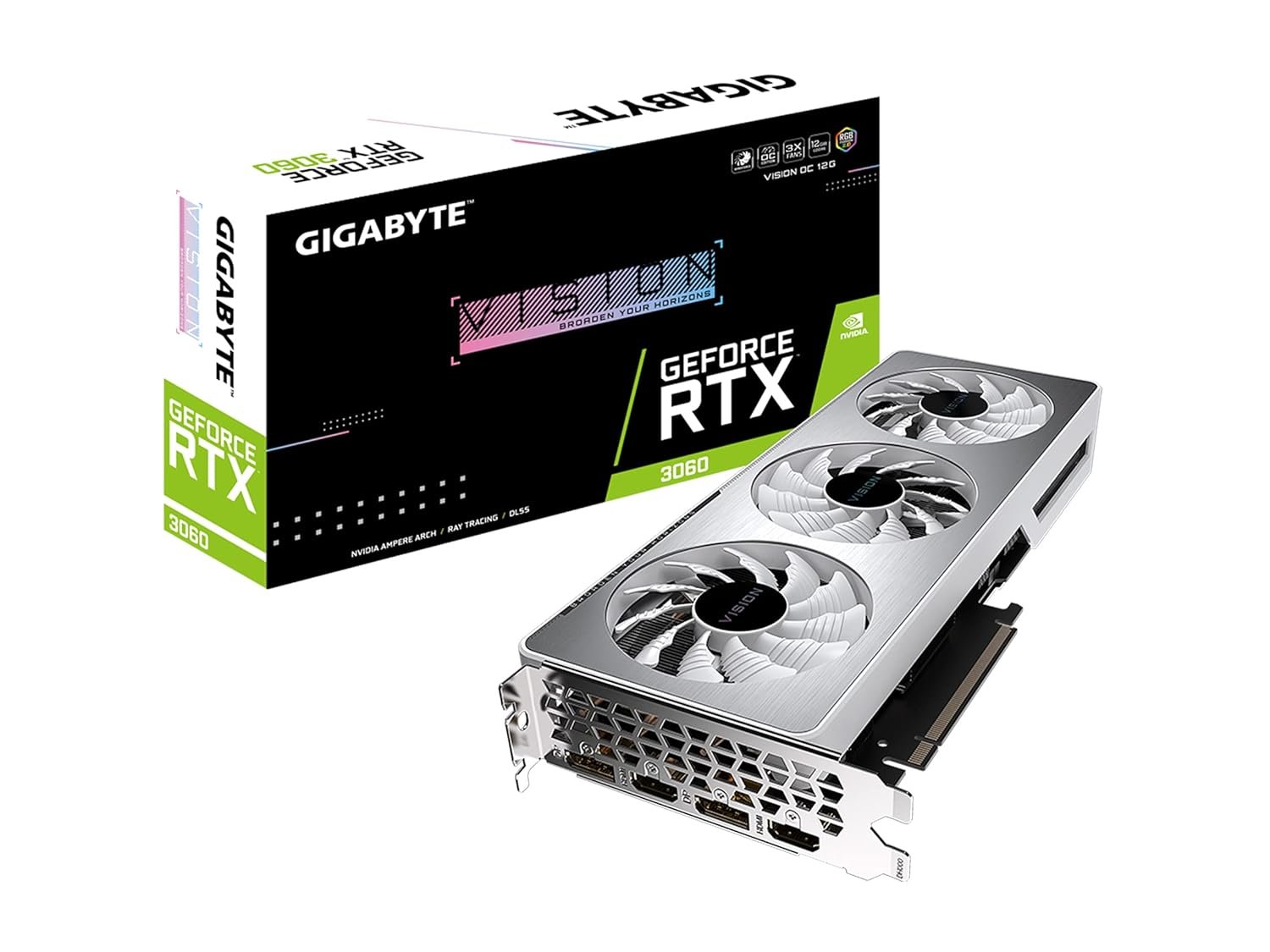 GIGABYTE GeForce pci_e_x16 RTX 3060 Vision OC 12G (REV2.0) Graphics Card, 3X WINDFORCE Fans, 12GB 192-bit GDDR6, GV-N3060VISION OC-12GD REV2.0 Video Card