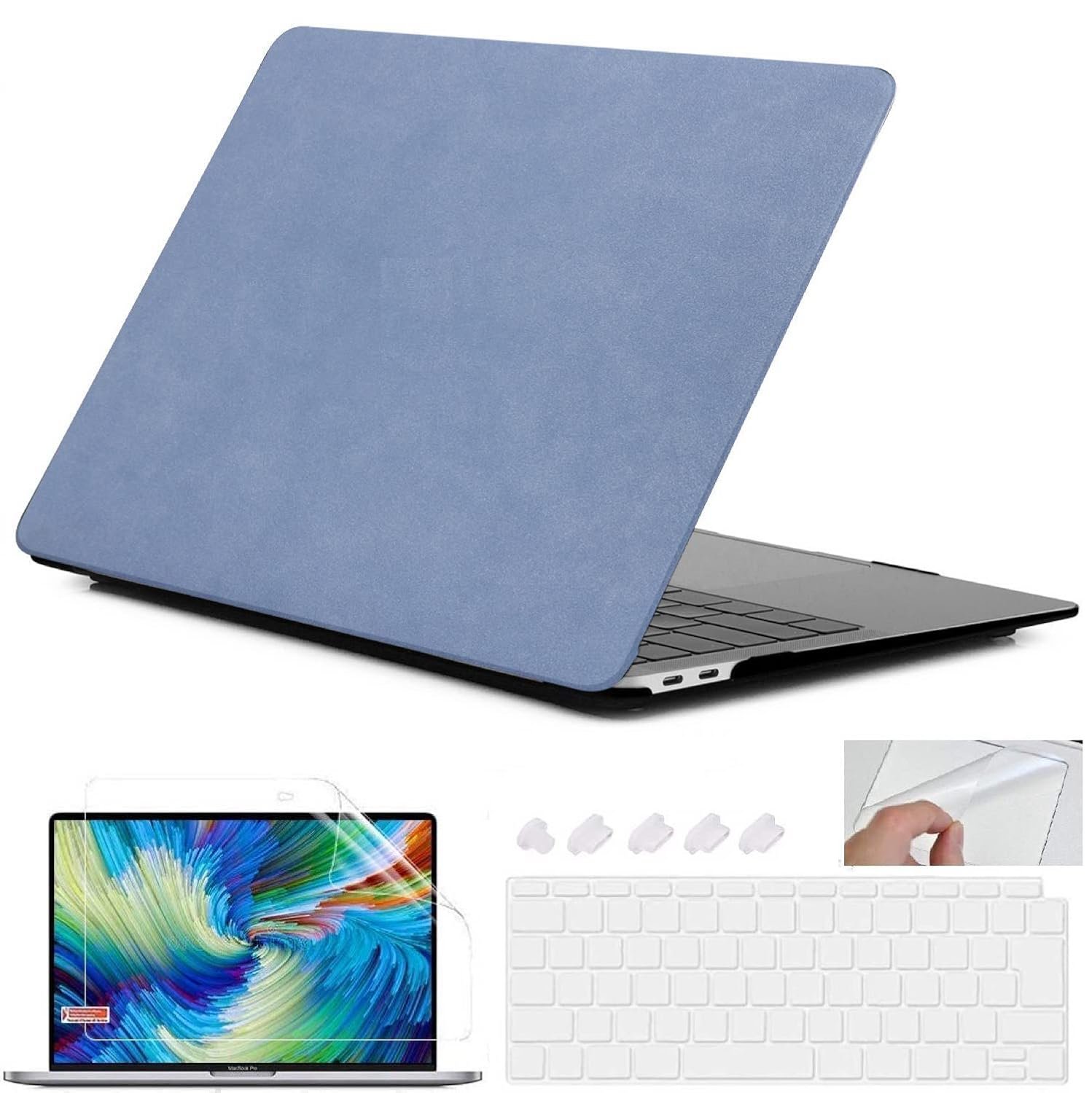 Package Includes : 1 × MacBook Case, 1 × Keyboard Cover, 1 × Screen Protector, 1 × Touch Pad Protector, 1 × Dust Plugs