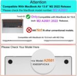Tukzer Laptop Hard Shell Case Cover Compatible for New Apple MacBook Air 13.6 inch M4 A3240 M3 A3113 M2 A2681 with Touch ID,2025 2024 2022 Release, M4 M3 M2 Air 13″ with Anti Slip Feet Pads-Clear