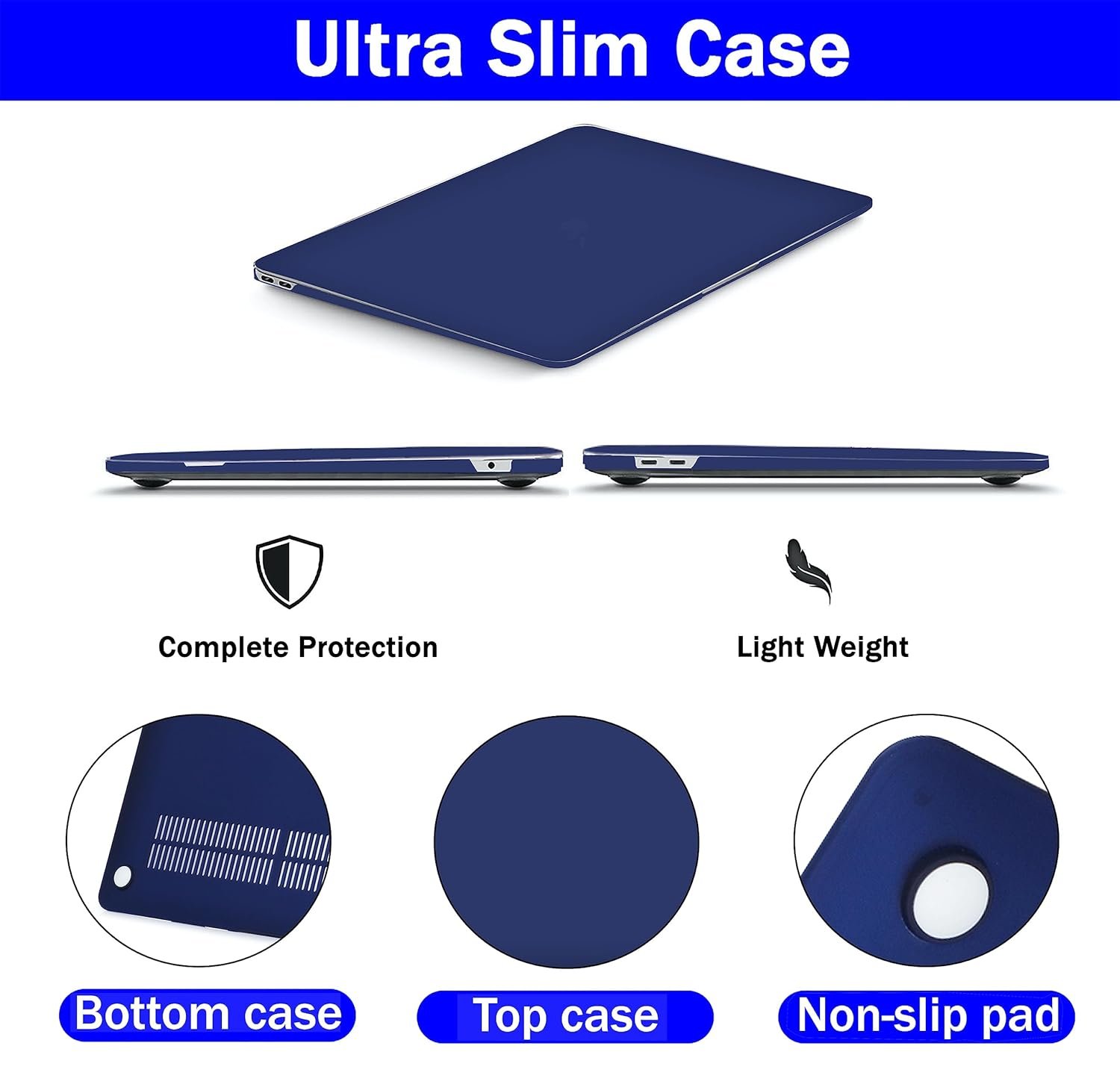 Ultra slim light weight hard case almost adds no weight to your device. Protects your Macbook from accidental hard knocks and scratches.