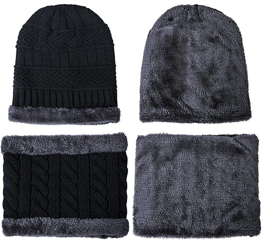 GLOWICK 1Set Winter Knit Beanie Cap Hat Neck Warmer Scarf Set Skull Cap for Men Women/Winter Cap for Men/Wool Cap with Neck Muffler for Winter Sports and Daily Use Multicolour