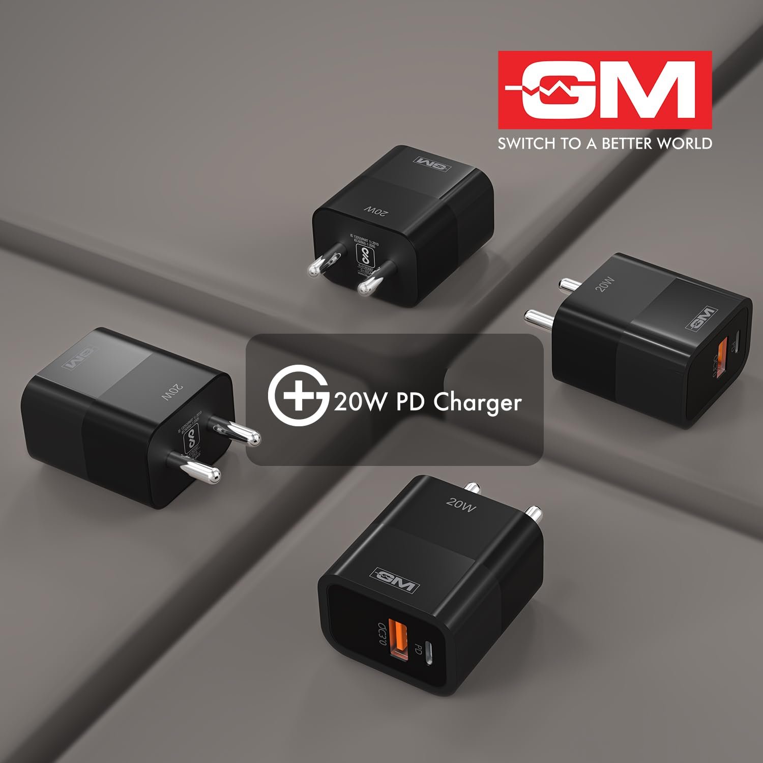 GM G+ 20W Dual Port Type C & A Mobile PD Charger | Fast Charging for Android, iPhone 16/15/14/13/12/11 Pro,Max, Samsung, One Plus (Black)