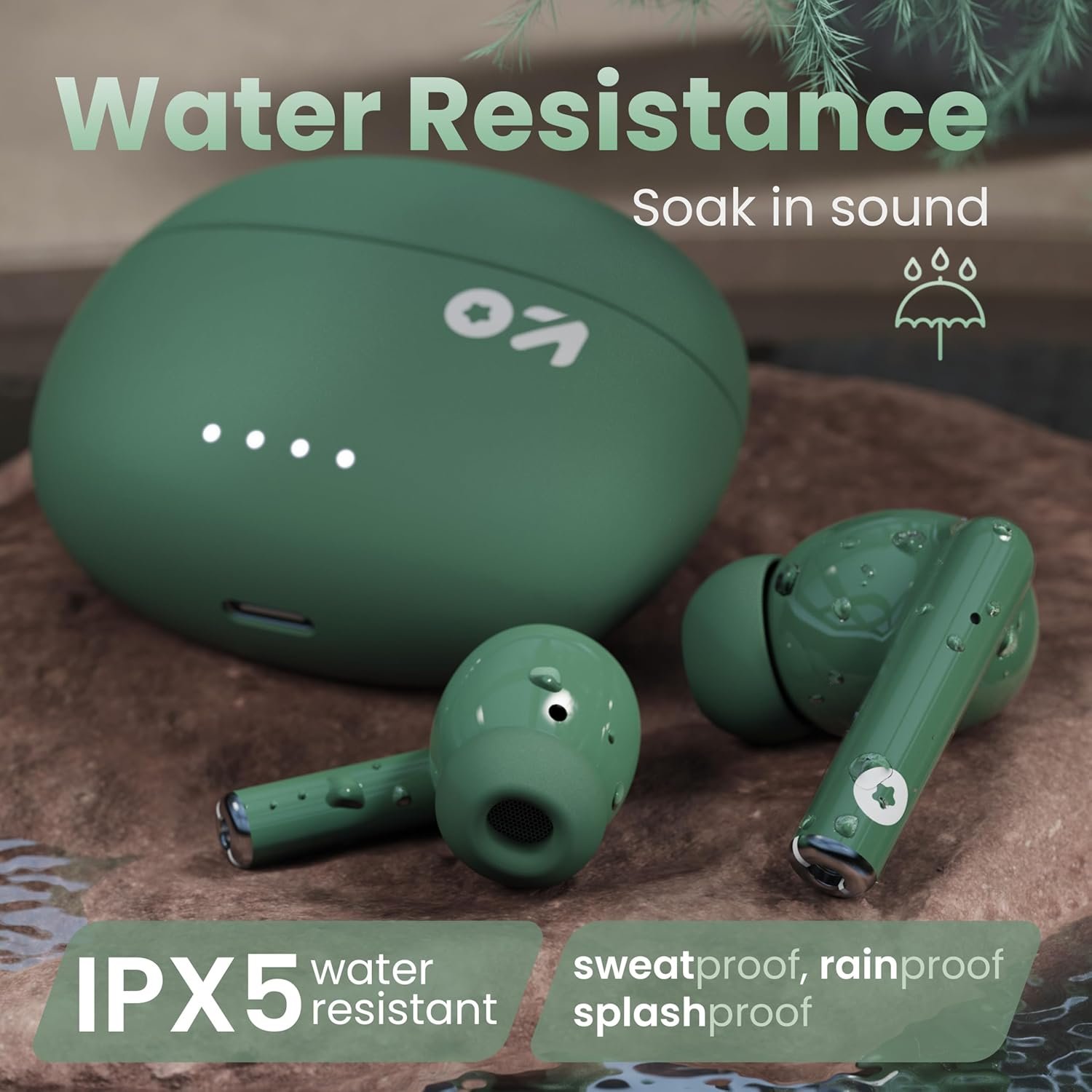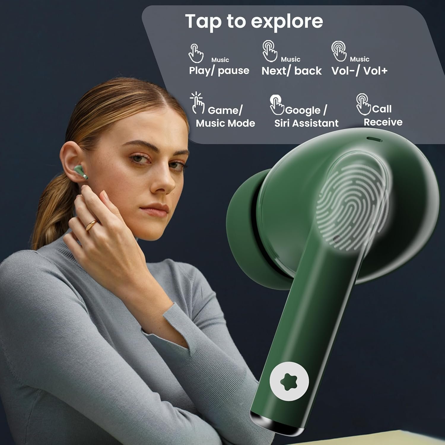 GOBOULT W20 Truly Wireless in Ear Earbuds with 35H Playtime, Zen™ ENC Mic, 45ms Low Latency, 13mm Bass Drivers, Type-C Fast Charging, Touch Controls, IPX5 Ear Buds TWS (Pine Green)
