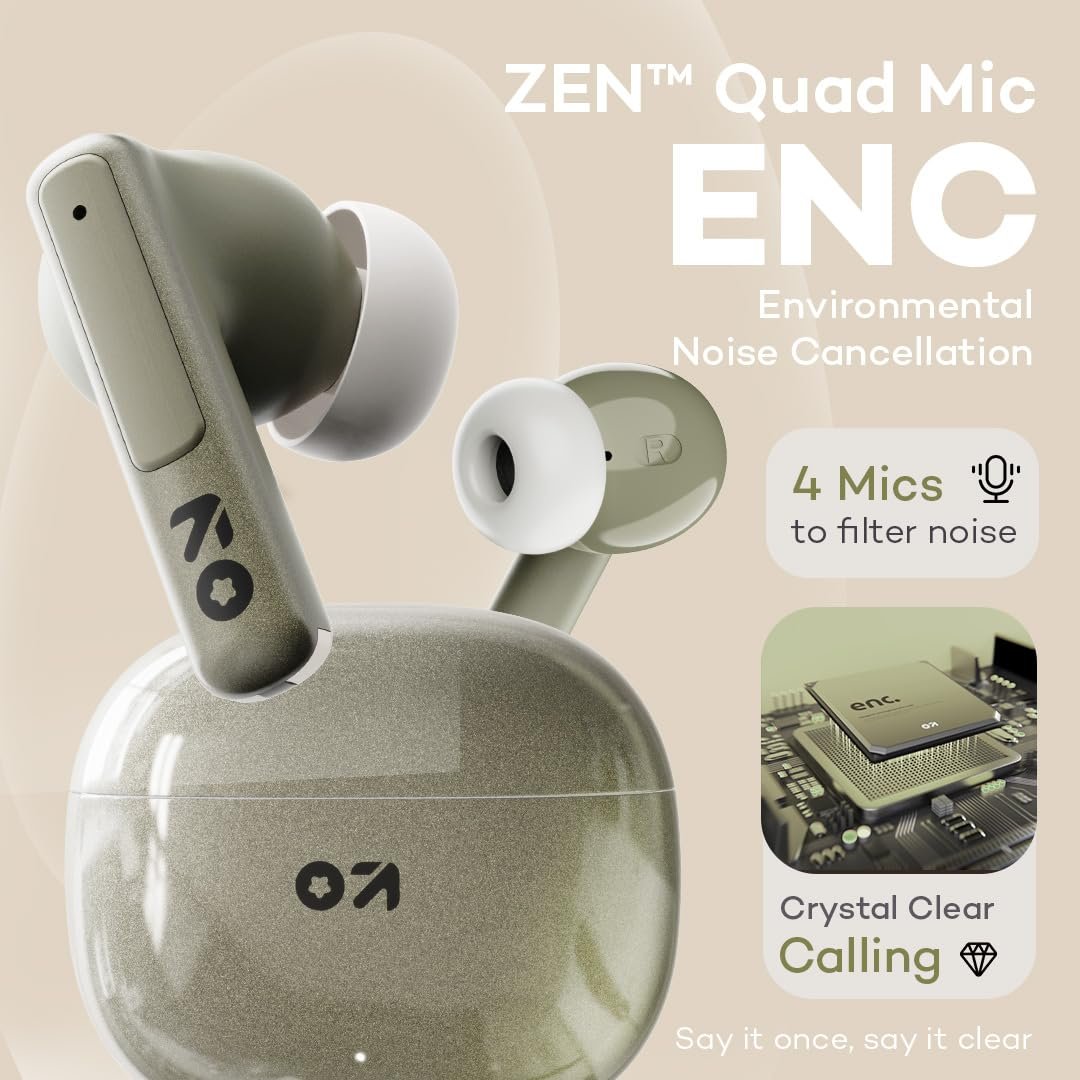 ✅ Quad Mic ENC Earbuds with Mic: These TWS earbuds come with ZEN Quad Mic ENC for crystal-clear calls. Ideal wireless earbuds with mic for calling, meetings, online classes, and voice recording—your go-to for clear communication.