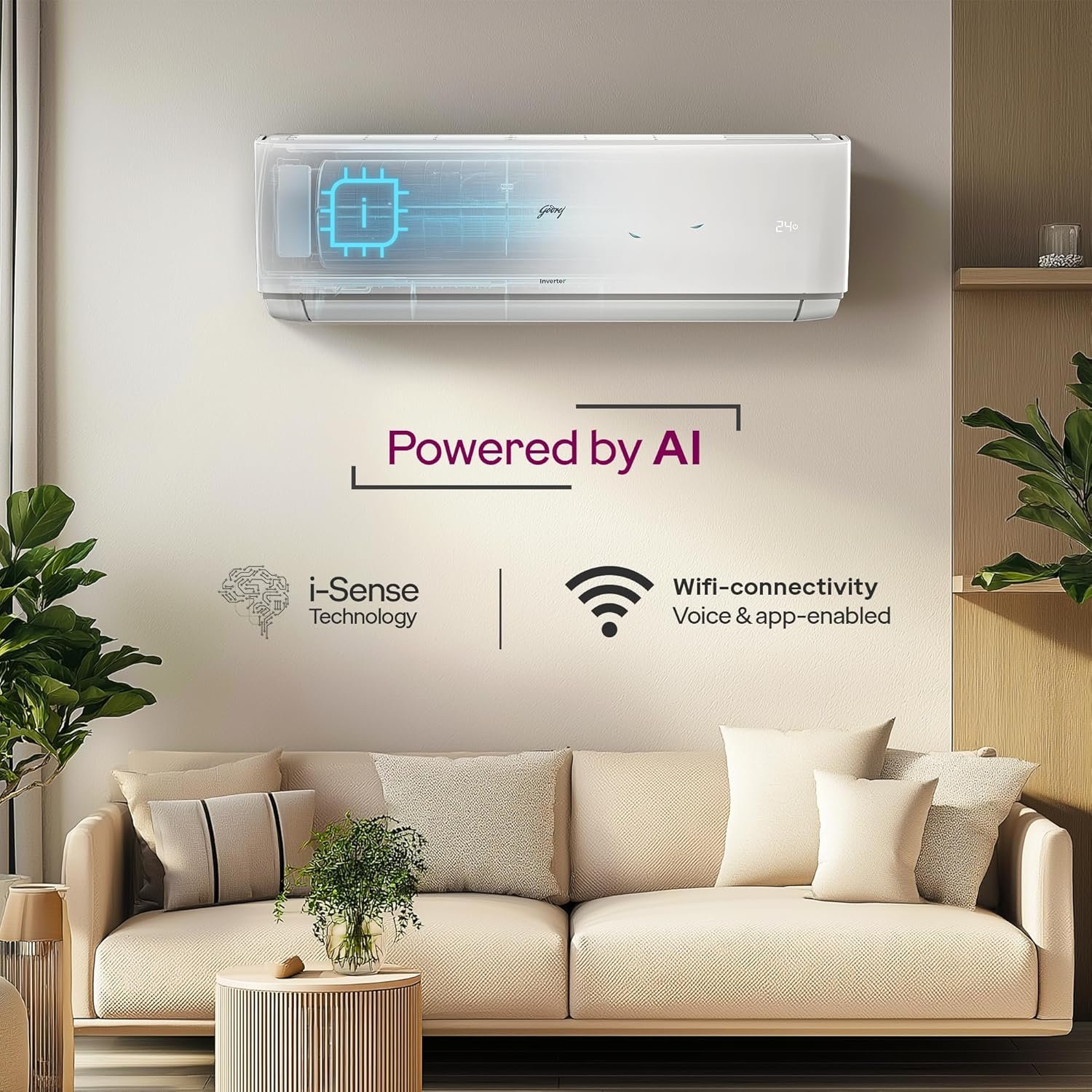 Godrej 1.5 Ton 3 Star, Wi-Fi, 5 Year Comprehensive Warranty, 5-In-1 Convertible Cooling Inverter Split AC (Copper, 2025 Model, Heavy Duty Cooling at 52 °C, AC 1.5T EI 18A3T PYA IVBL IOT, White)
