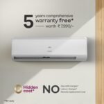 Manufacturer Warranty: 5 YEARS FREE COMPREHENSIVE WARRANTY, applicable on purchase after 1st Sept 2024 (Coverage: Labor and all functional parts: Gas charging, compressor, Inverter controller drive, Remote, Indoor PCB, Fan Motors, Heat Exchange coils), 5 years on PCB, 10 years on compressor