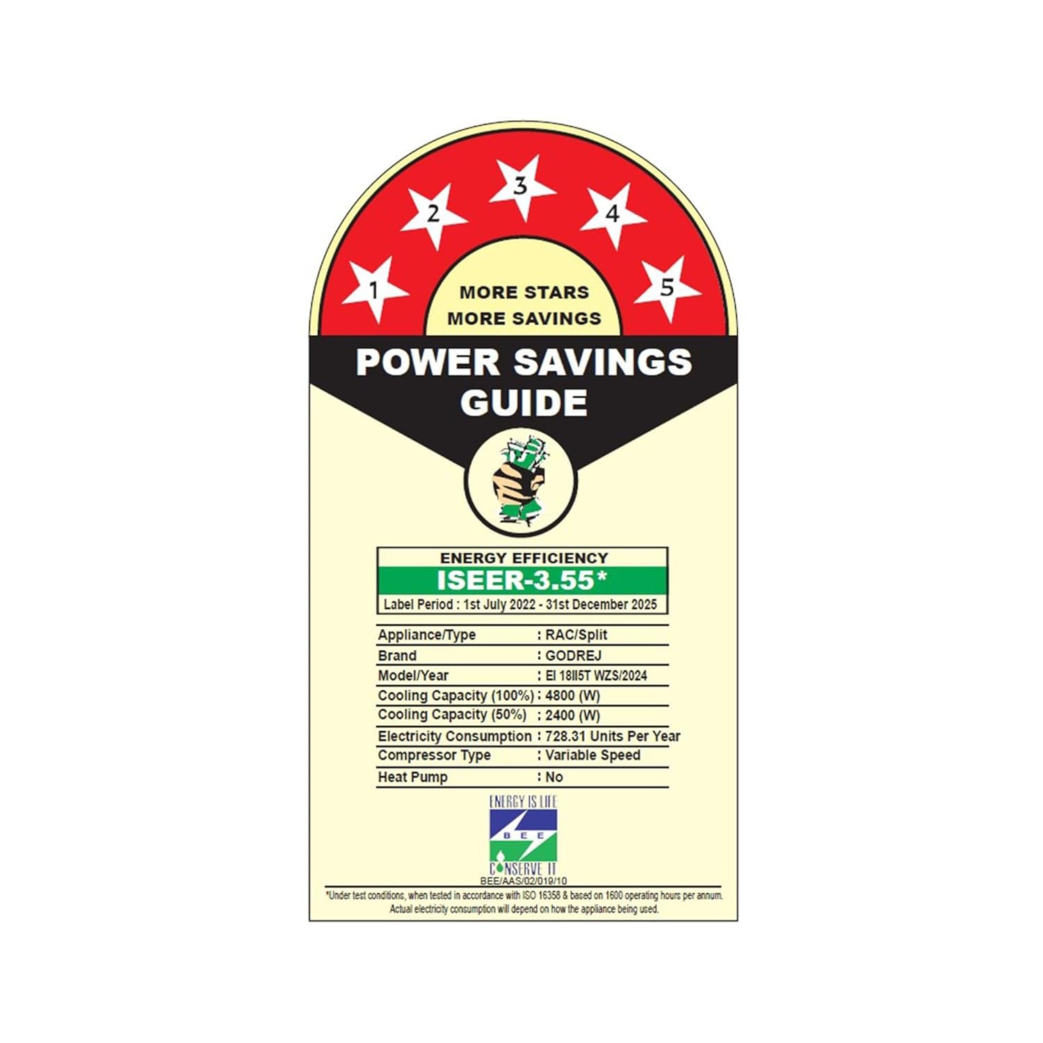 Energy rating: 5 star, Annual energy consumption: 728.37, ISEER value: 5.1