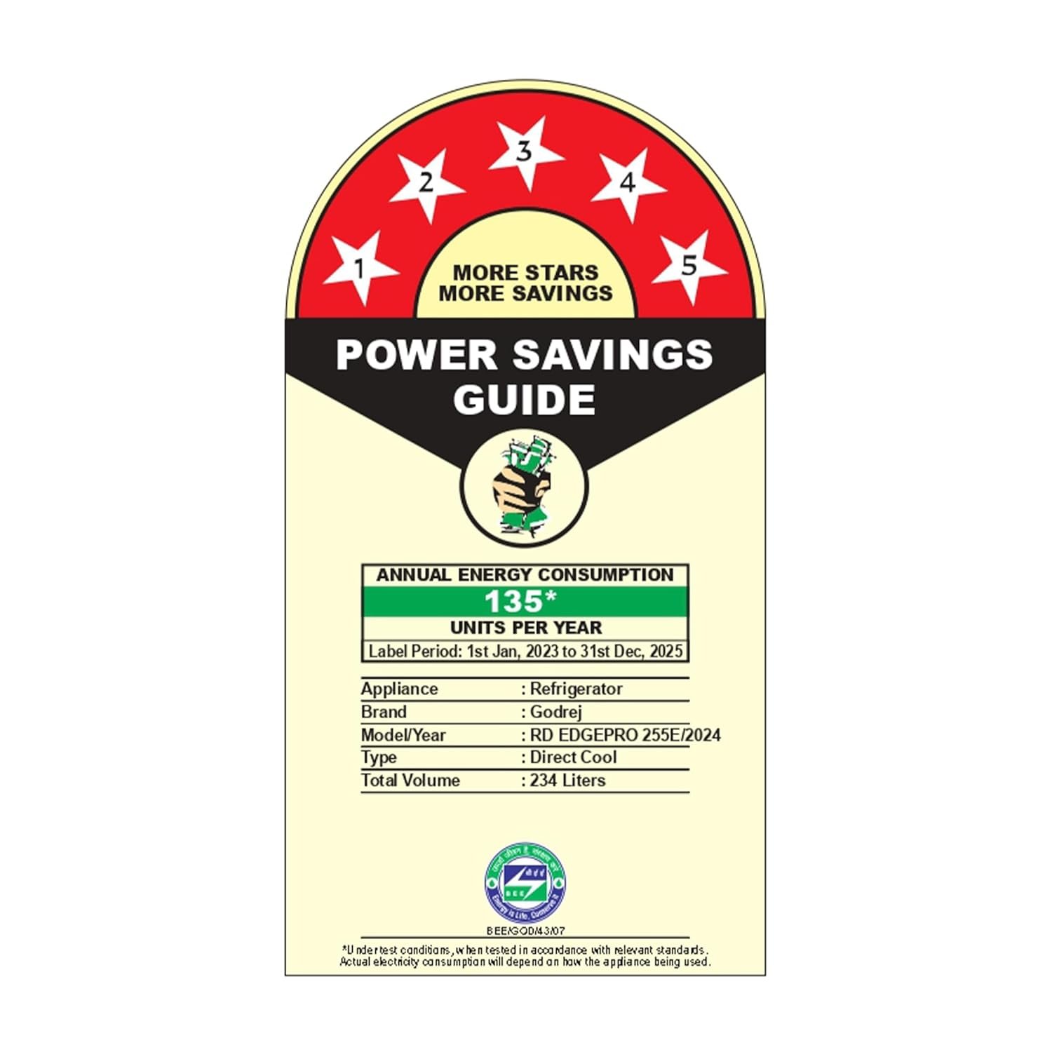 Energy Efficiency: 5 Star : Best in class efficiency (Please refer energy label on product page or contact brand for more details), Annual energy consumption 131 units per year