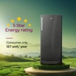 Godrej 194 L 5 Star | Hygiene+ Inverter Technology | Turbo Cooling and Moisture Control Technology | Base Drawer | Direct Cool Single Door Refrigerator (2025 Model, RD M200E TDI FS ST, Fossil Steel)