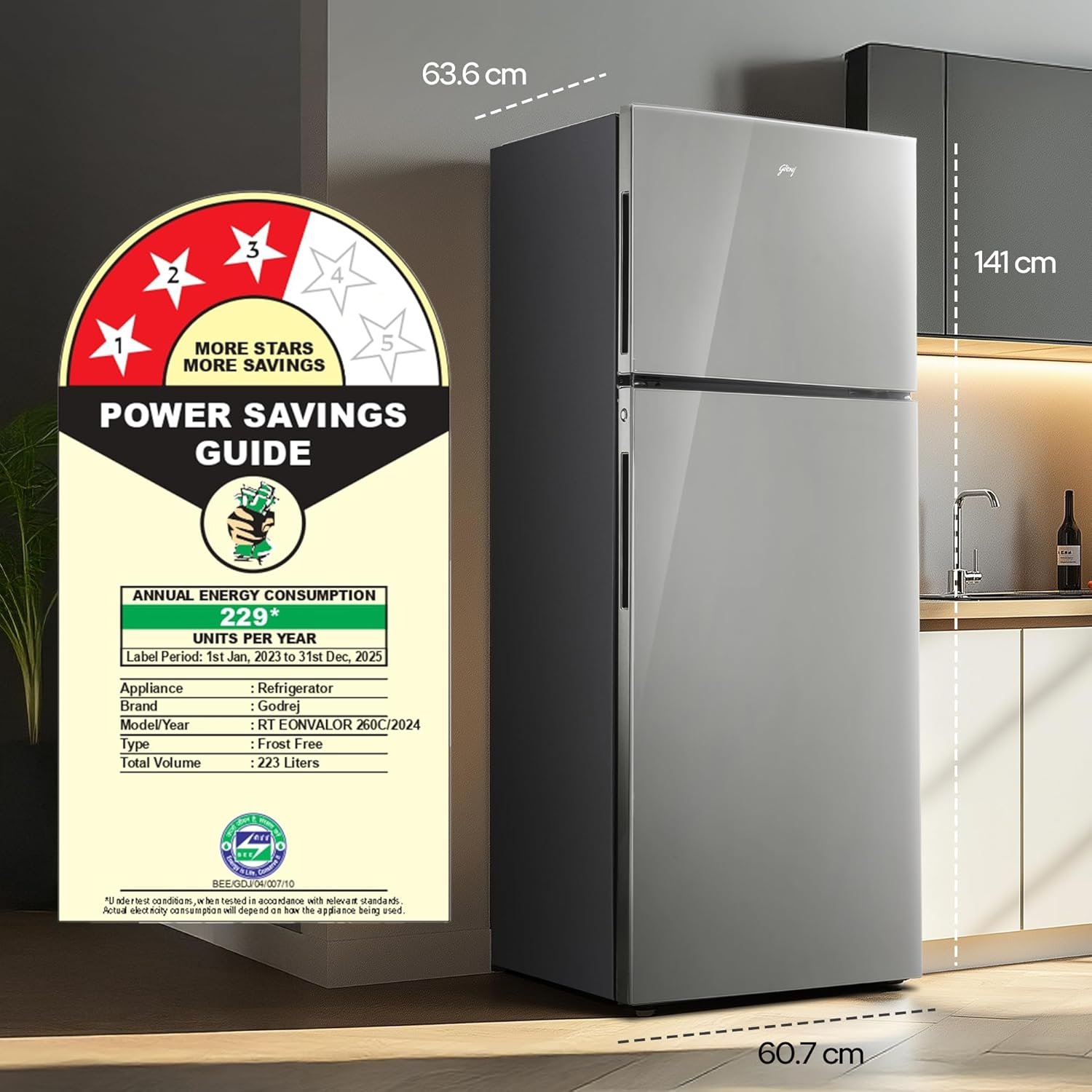 Energy Efficiency: 3 Star : Energy Efficiency (Please refer energy label on product page or contact brand for more details), Annual energy consumption 229 units per year