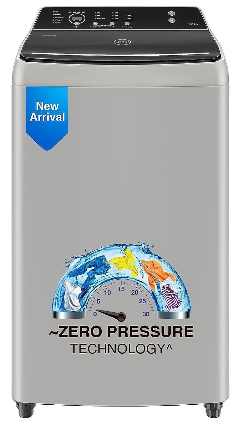 Godrej 7 Kg 5 Star Zero Pressure Technology Fully-Automatic Top Load Washing Machine Appliance With 26 Customisable Wash programs (WTEON VLVT 70 5.0 FDTN SVGZ, Silver Glaze)