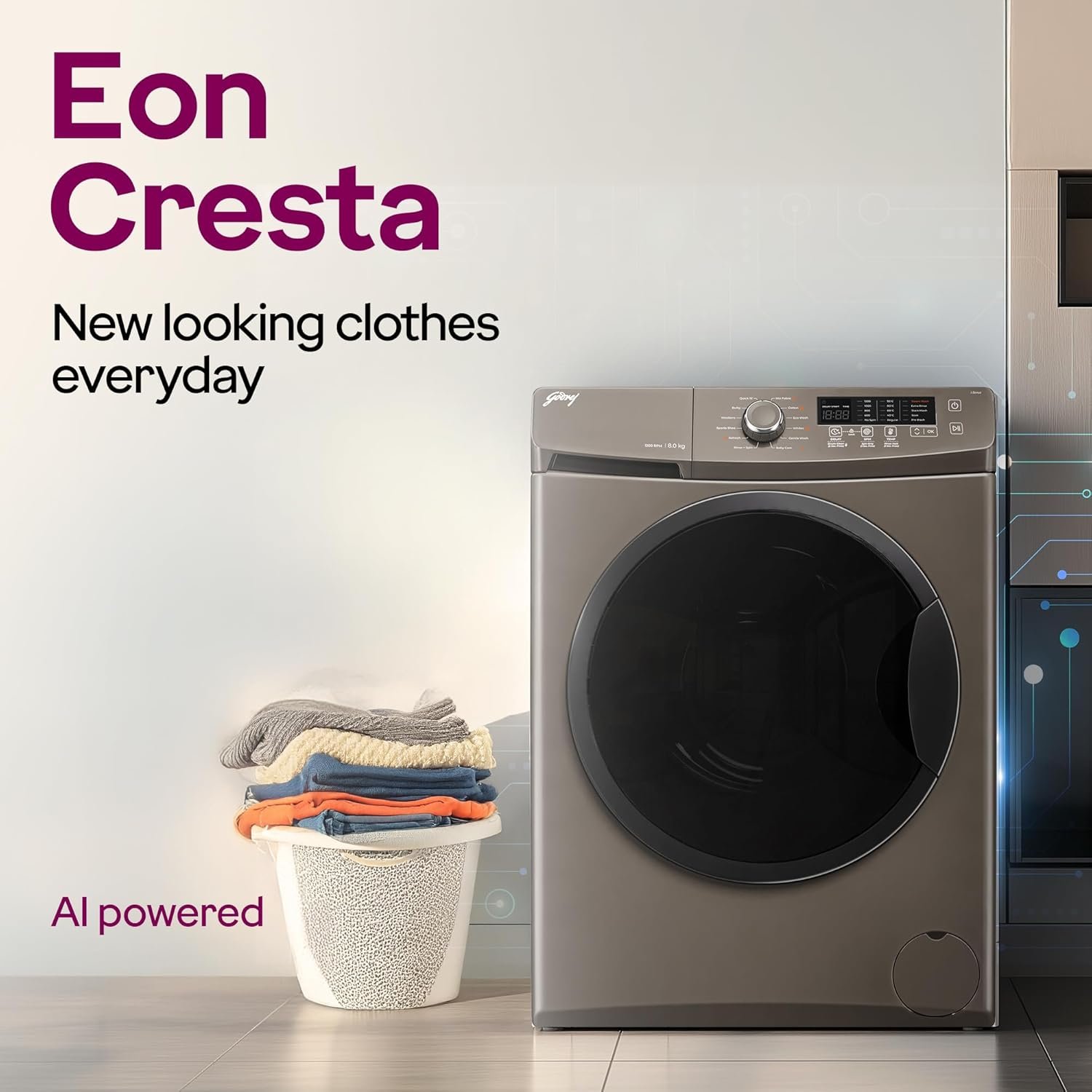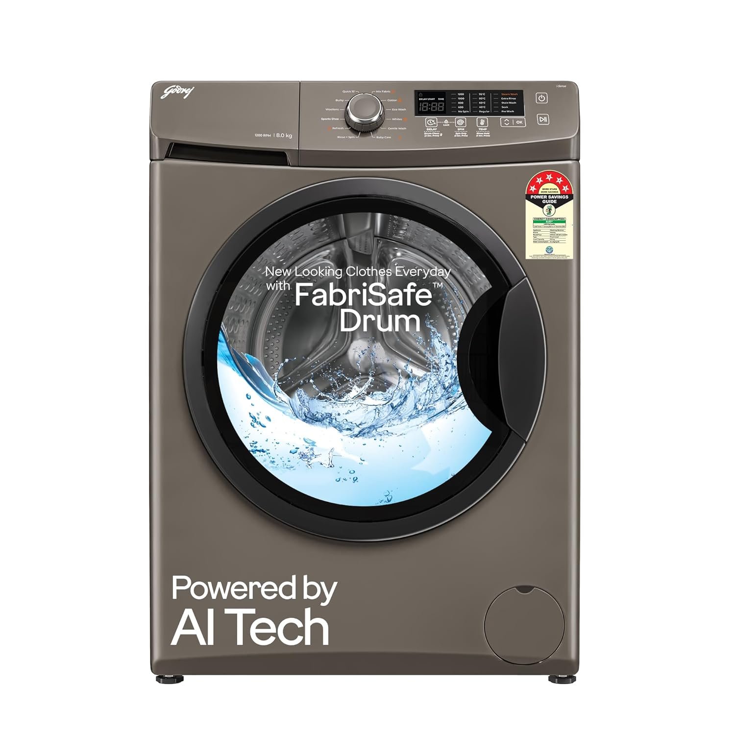 Godrej 8 Kg 5 Star, AI Powered, Inbuilt Heater, Fabrisafe Drum, Steam Wash, Child Lock, Unbalanced Load Sensor, Fully Automatic Front Load Washing Machine (WFEON CRS 8012 5.0 FKEDM CNGR, Candy Grey)