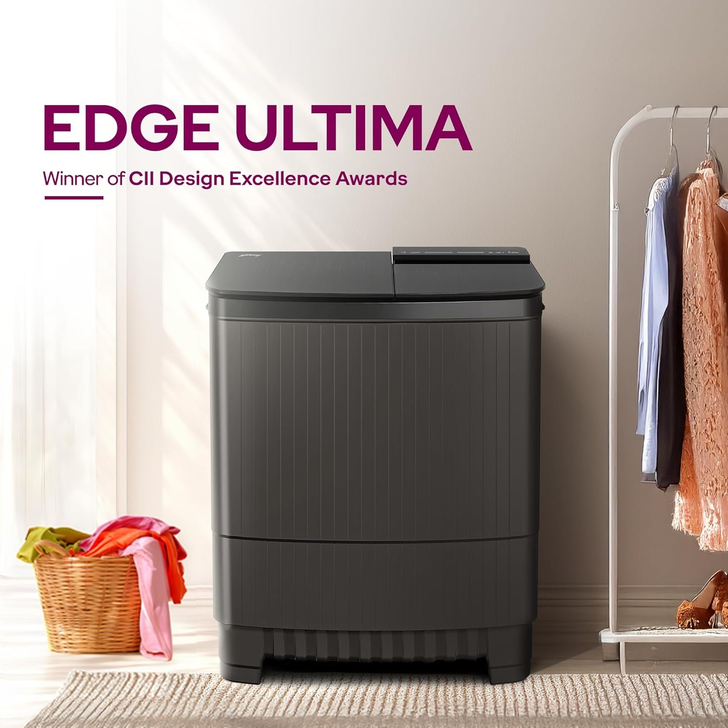 Godrej 8 Kg 5 Star, With Soft Shut Wash Lid, Semi-Automatic Top Loading Washing Machine (WSEDGE ULTS 80 5.0 DB2M CSGR, Crystal Grey, Stainless Steel Wash and Spin Drum)