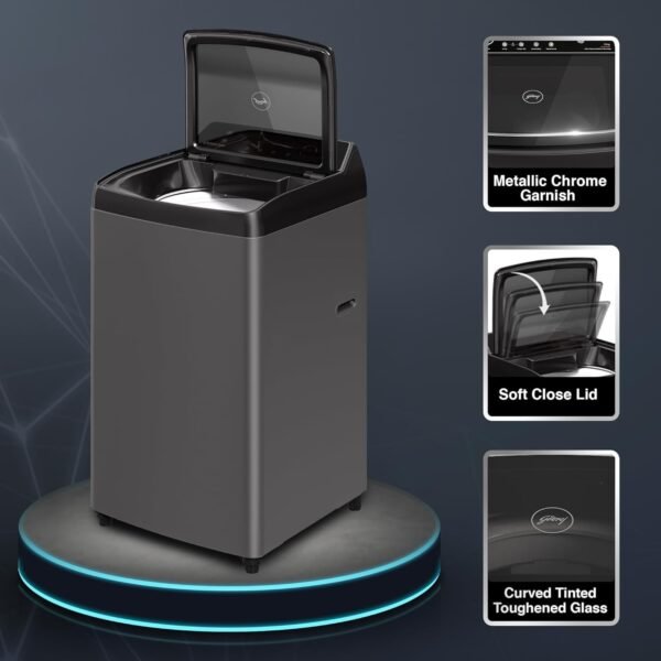 Godrej 8 Kg 5 Star Zero Pressure Technology Fully-Automatic Top Load Washing Machine Appliance (WTEON VLVT 80 5.0 FDTN MTBK, Metallic Black, With 26 Flexi Wash Programs)