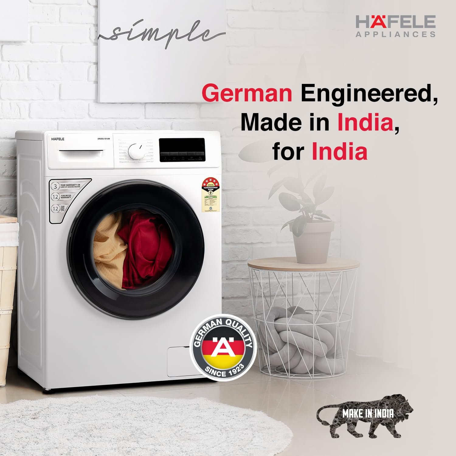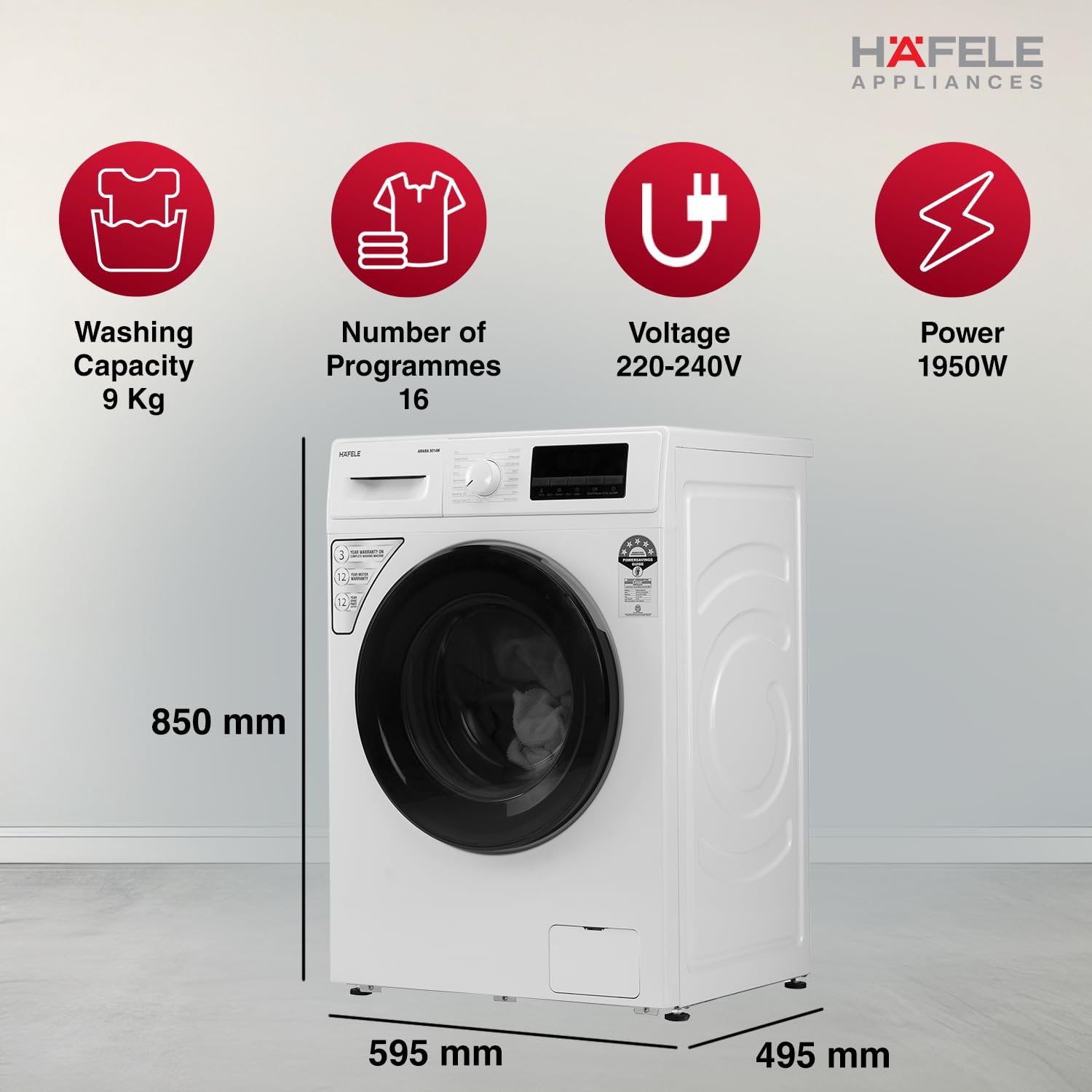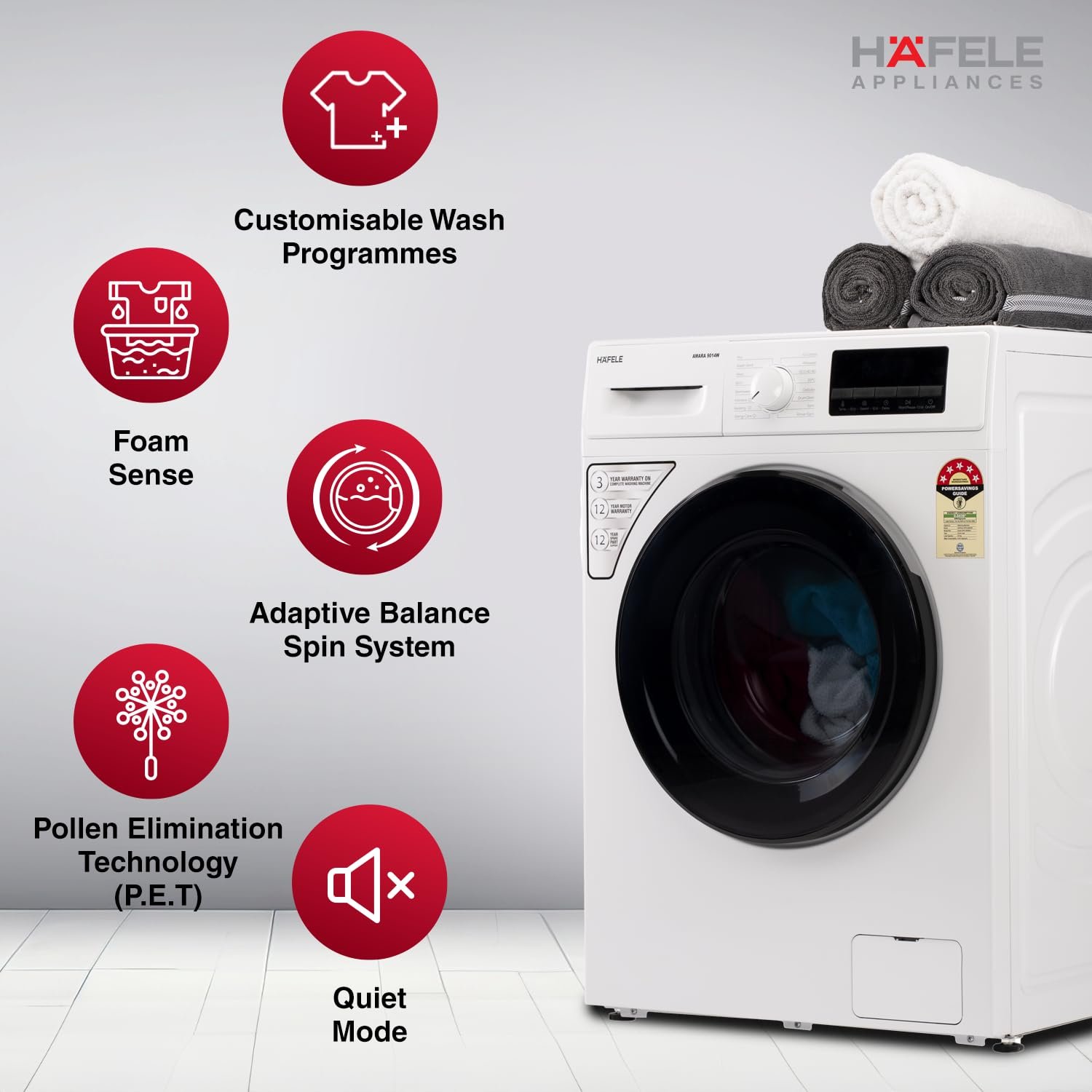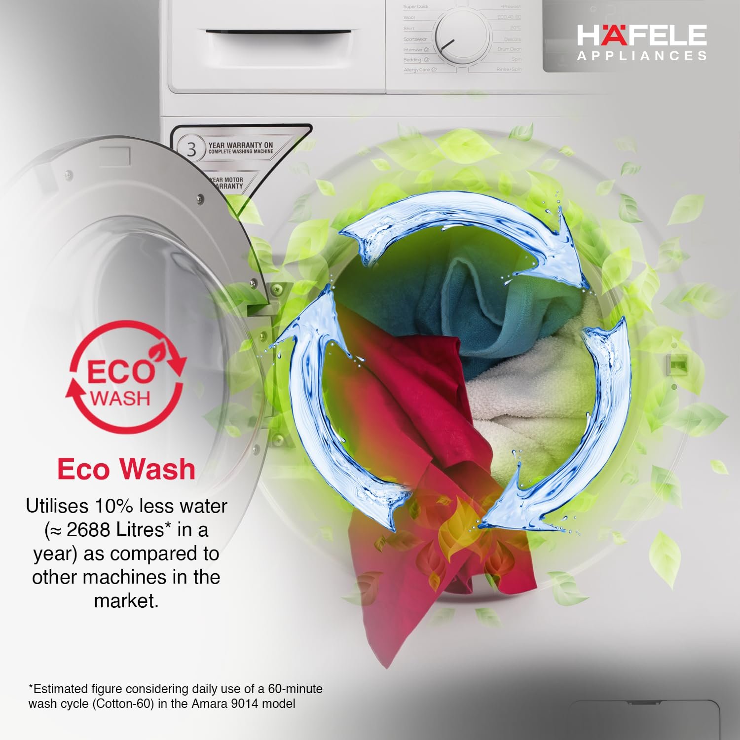 HAFELE AMARA 9 kg 5 Star, Premium Fully Automatic Front-Load washing machine engineered using German technology, comes with Steam Shield and Hexa Wash Design