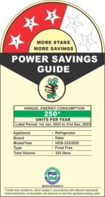 Energy Rating : 3 Star Energy Efficiency | Annual Energy Consumption: 250 Kilowatt Hours Per Year