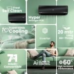 Key Features: Frost Self Clean | Supersonic Cooling in Just 10 Sec | HEXA Inverter | Optimum Cooling at 60C High Temperature | Hyper PCB for Stabilizer free Performance | Upto 20 Mtrs Air throw | 7 in 1 Intelli Convertible | AI Smart AC | 4-Way Air Swing | Expandable | Upto 33% extra Air Circulation | Super Micro Anti Bacterial Filter | Super Anticorrosion| Energy Efficient| ECO & Turbo Mode | Super Quiet Mode | Dark Mode | Hidden Display | Low Gas Warning