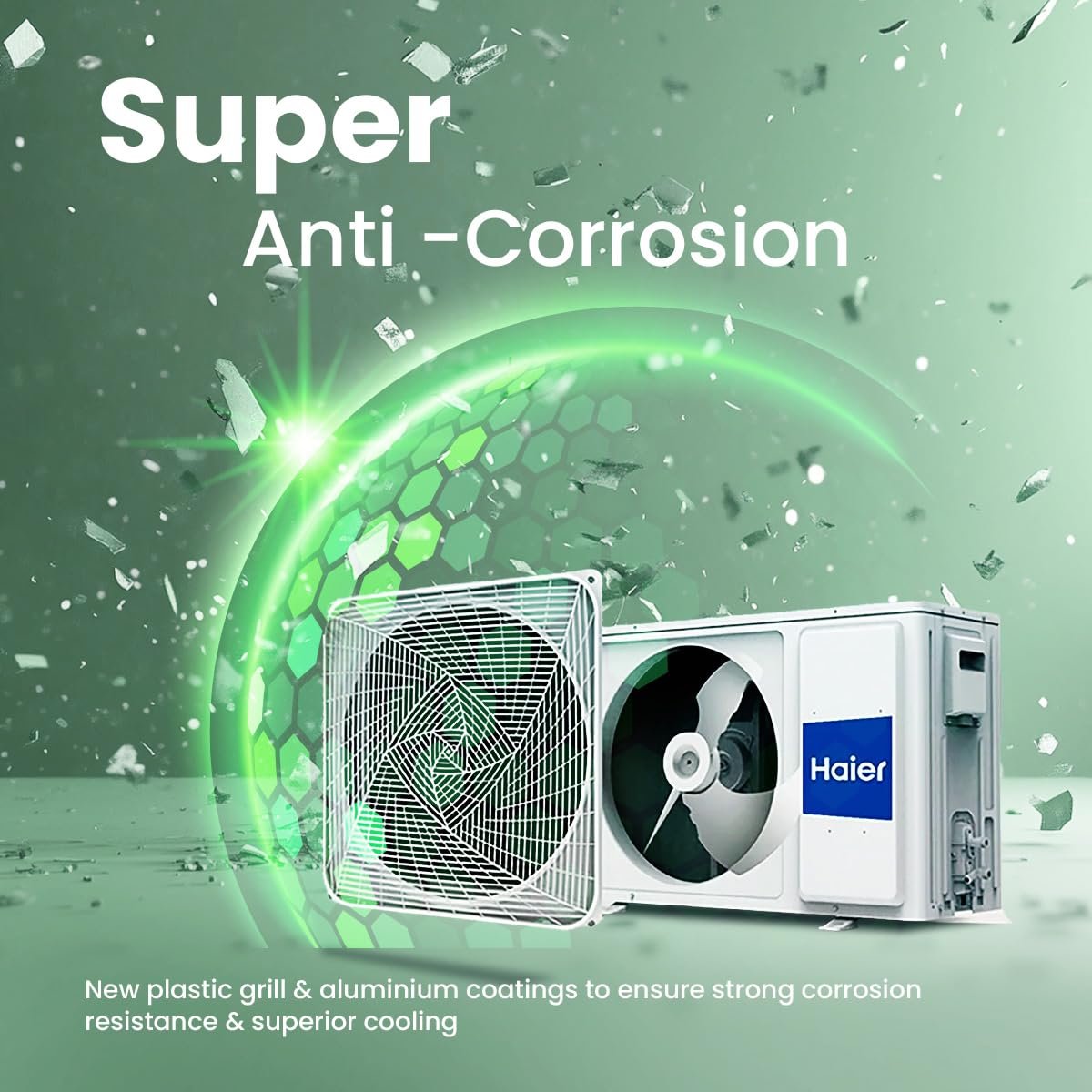 Haier’s Blue Fin coating and anti-corrosive features ensure long-lasting, rust-free performance