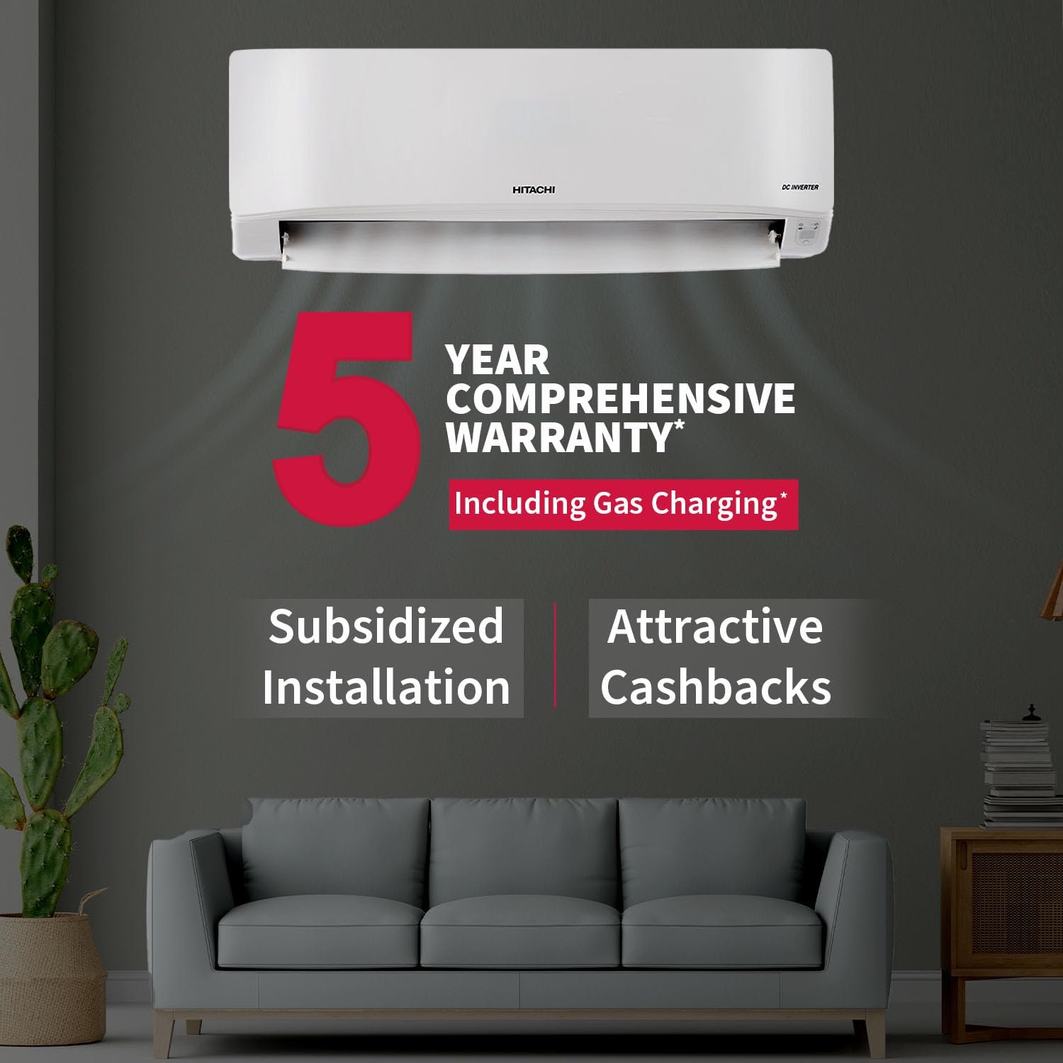 Hitachi Split AC with Inverter Compressor: Faster cooling and lower energy consumption with Hitachi AC. Its variable speed compressor smartly adjusts power based on heat load, ensuring uninterrupted cooling