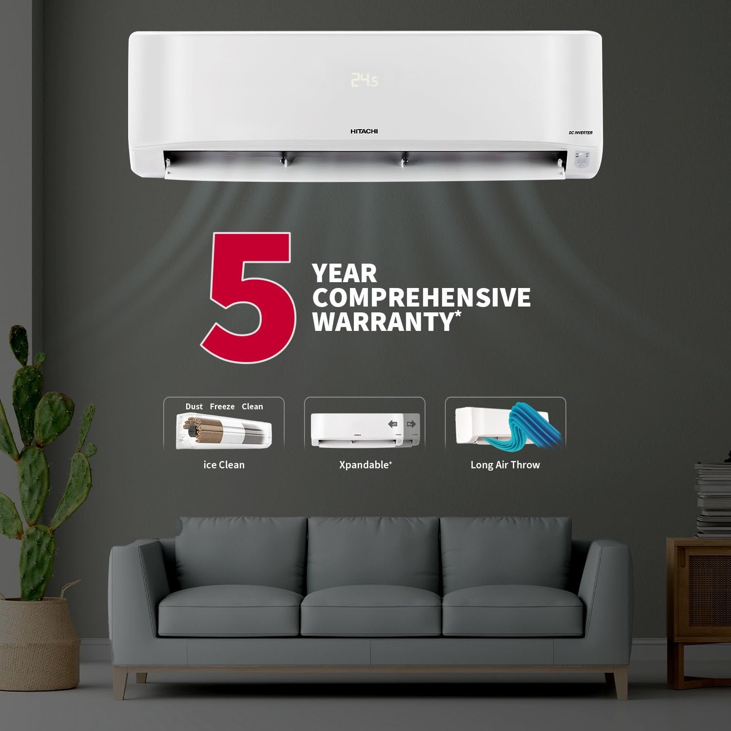 Hitachi 1.5 Ton Class 5 Star Xpandable+ Inverter Split AC (100% Copper, Smart Display, 4-Way Swing, ice Clean, Dust Filter, 5400STXL RAS.G518PCCIBT, White)