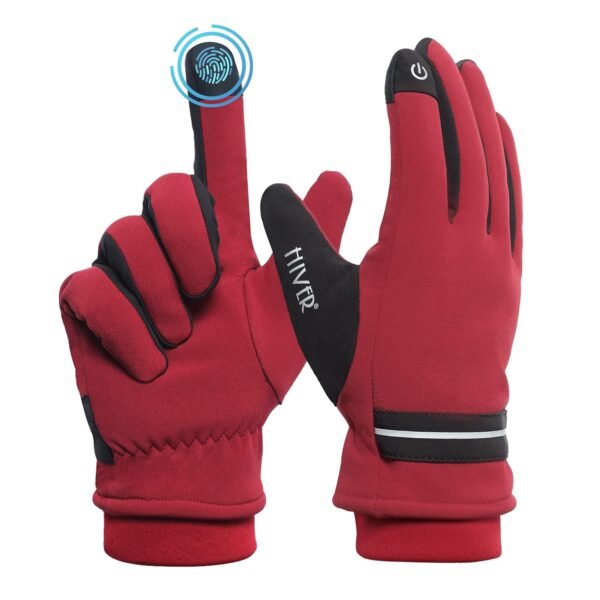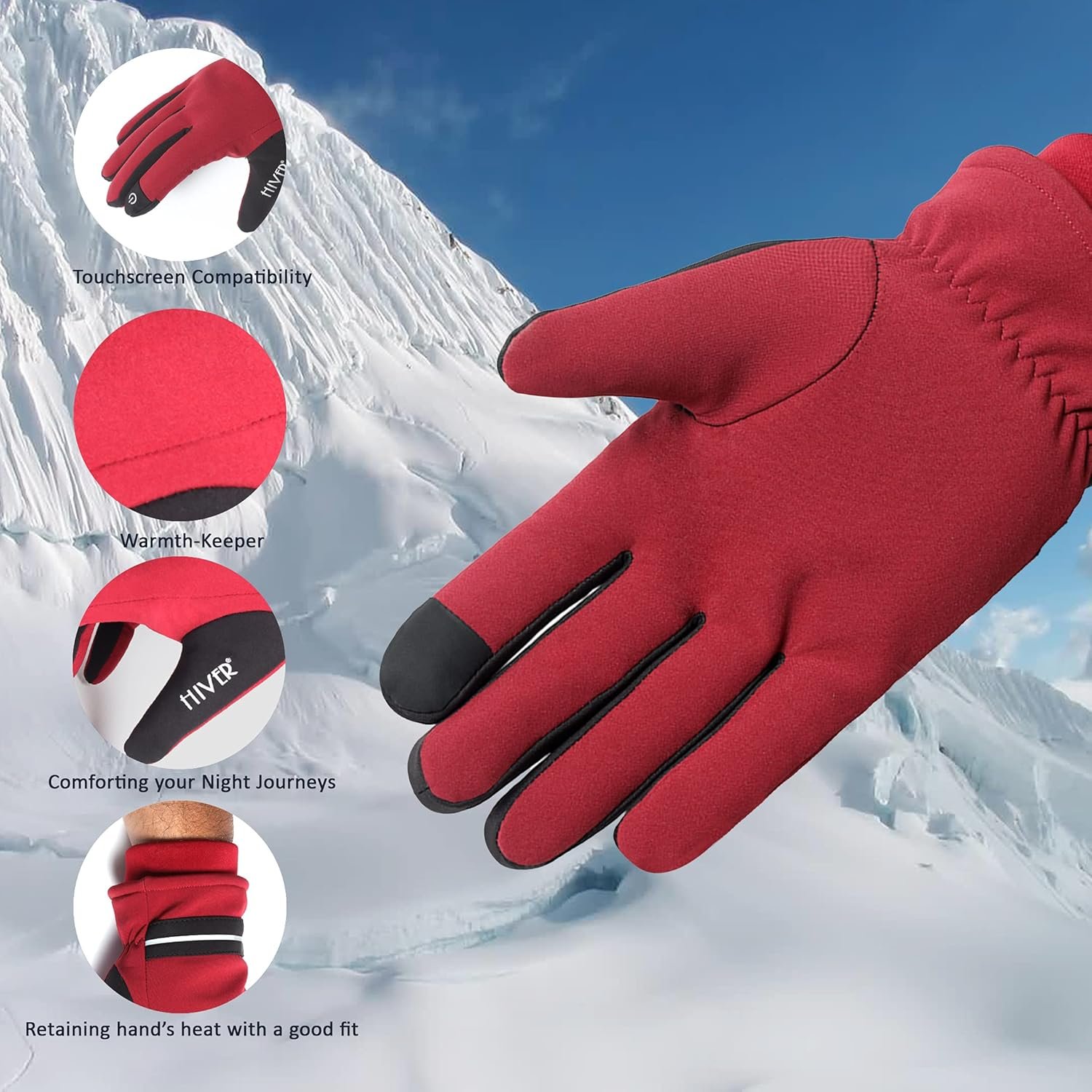 HIVER Waterproof Gloves Winter Gloves Men Women Touch Screen Glove Anti-Slip Windproof Waterproof Texting Gloves for Running Cycling (Large, Maroon)