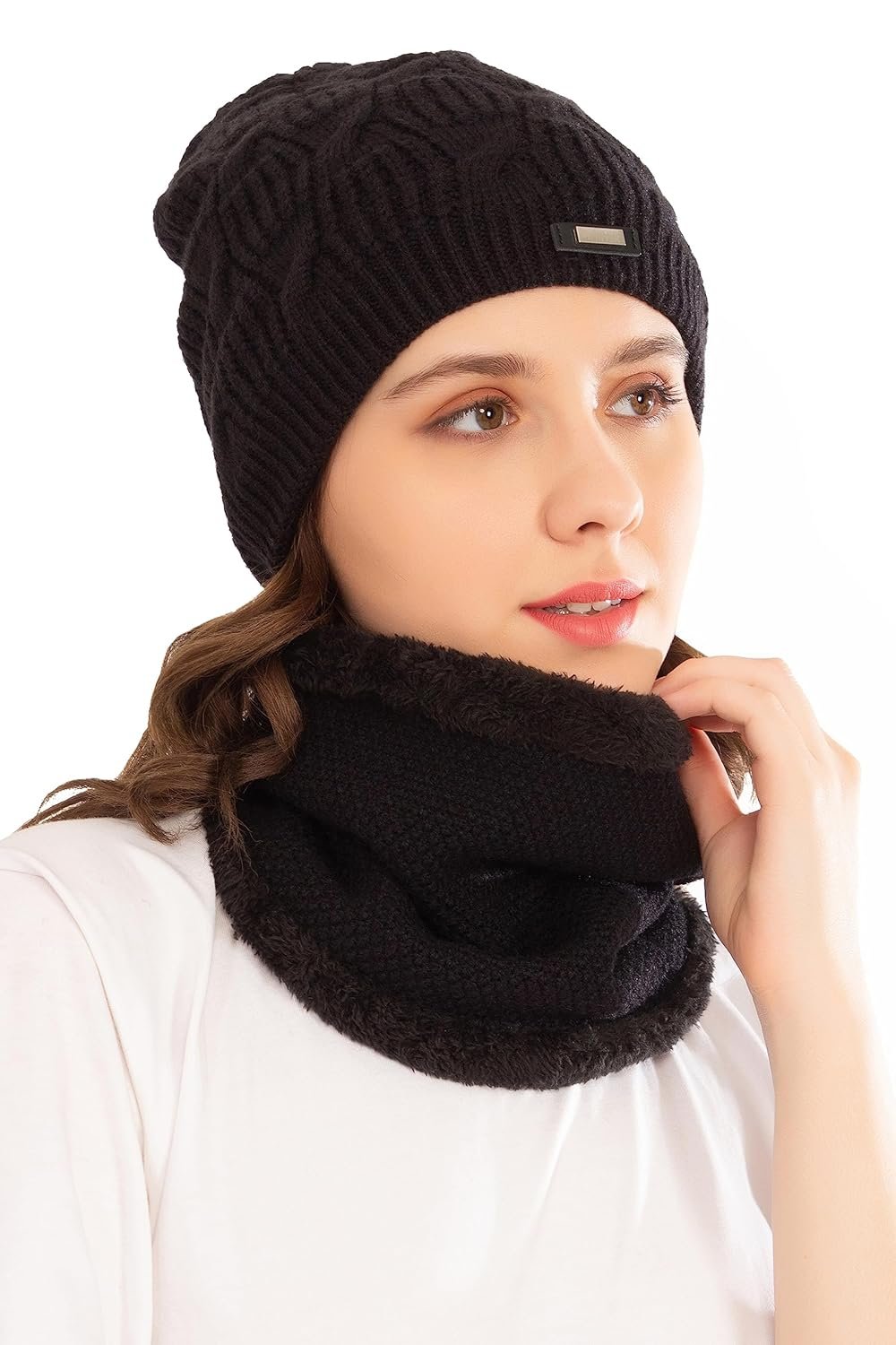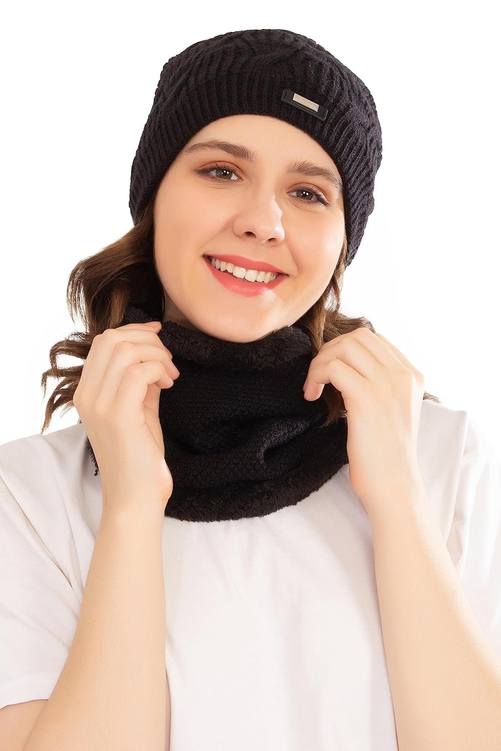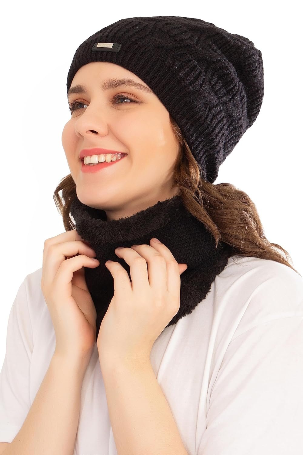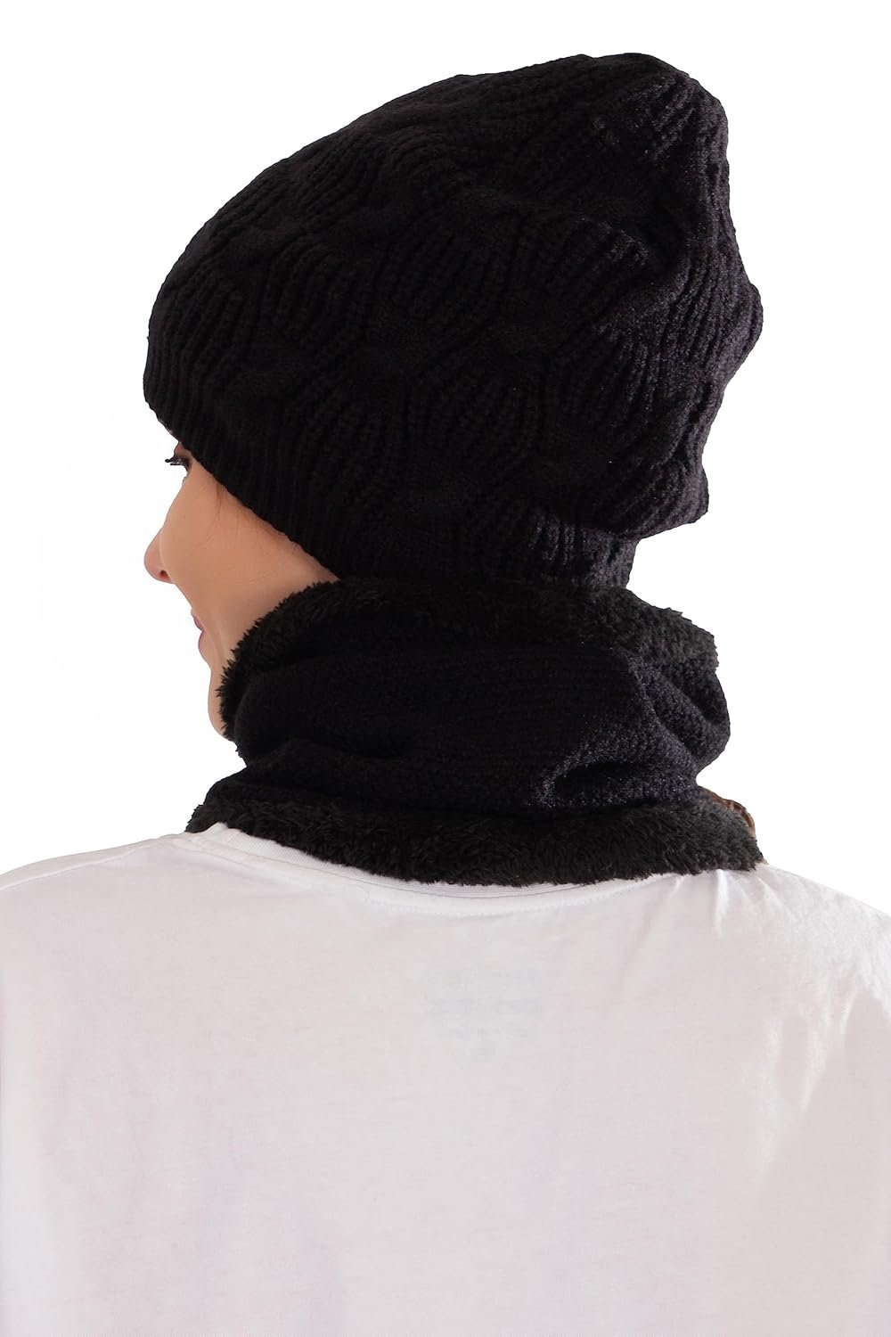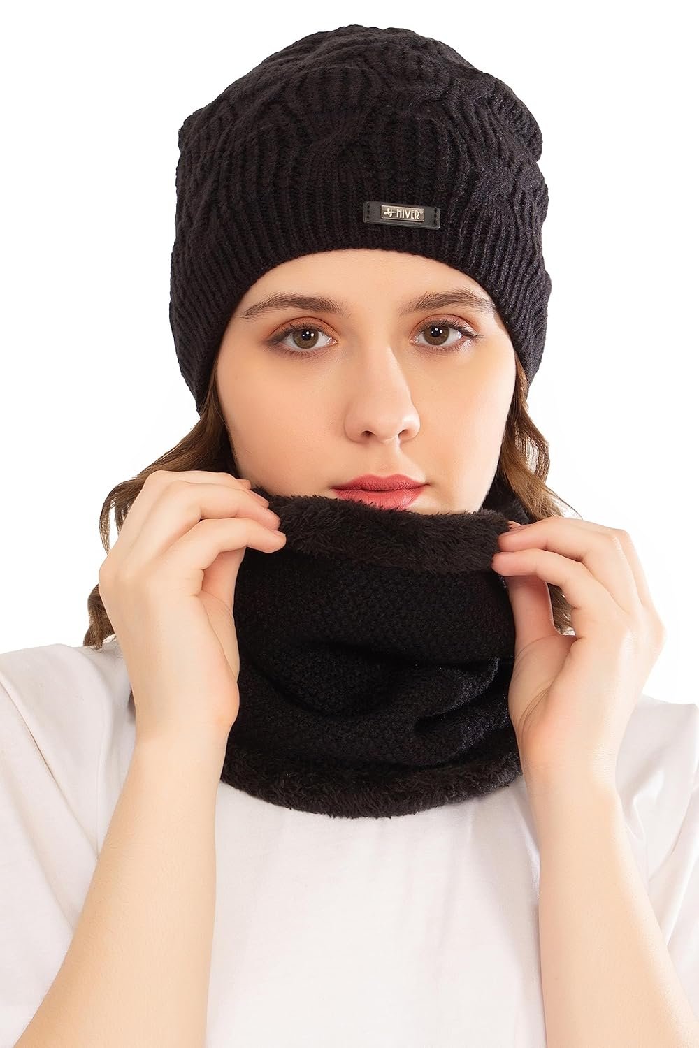 HIVER Winter Beanie Cap Scarf Set | Warm Knit Cap | Thick Fleece Lined Winter Hat & Scarf for Men Women| Soft & Comfortable |