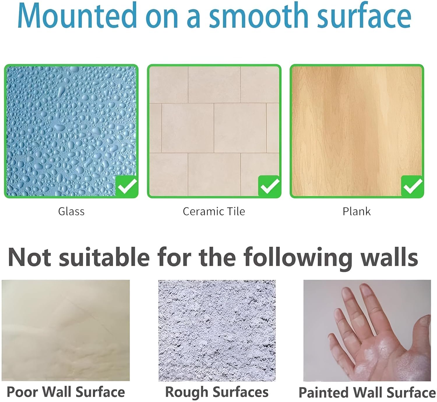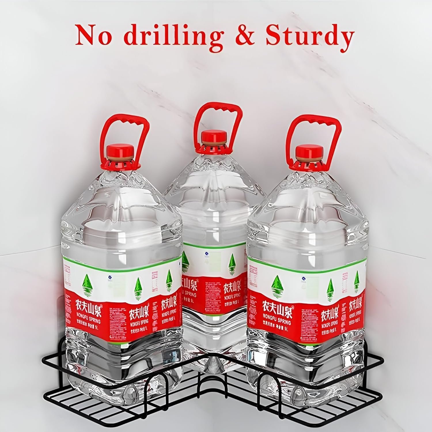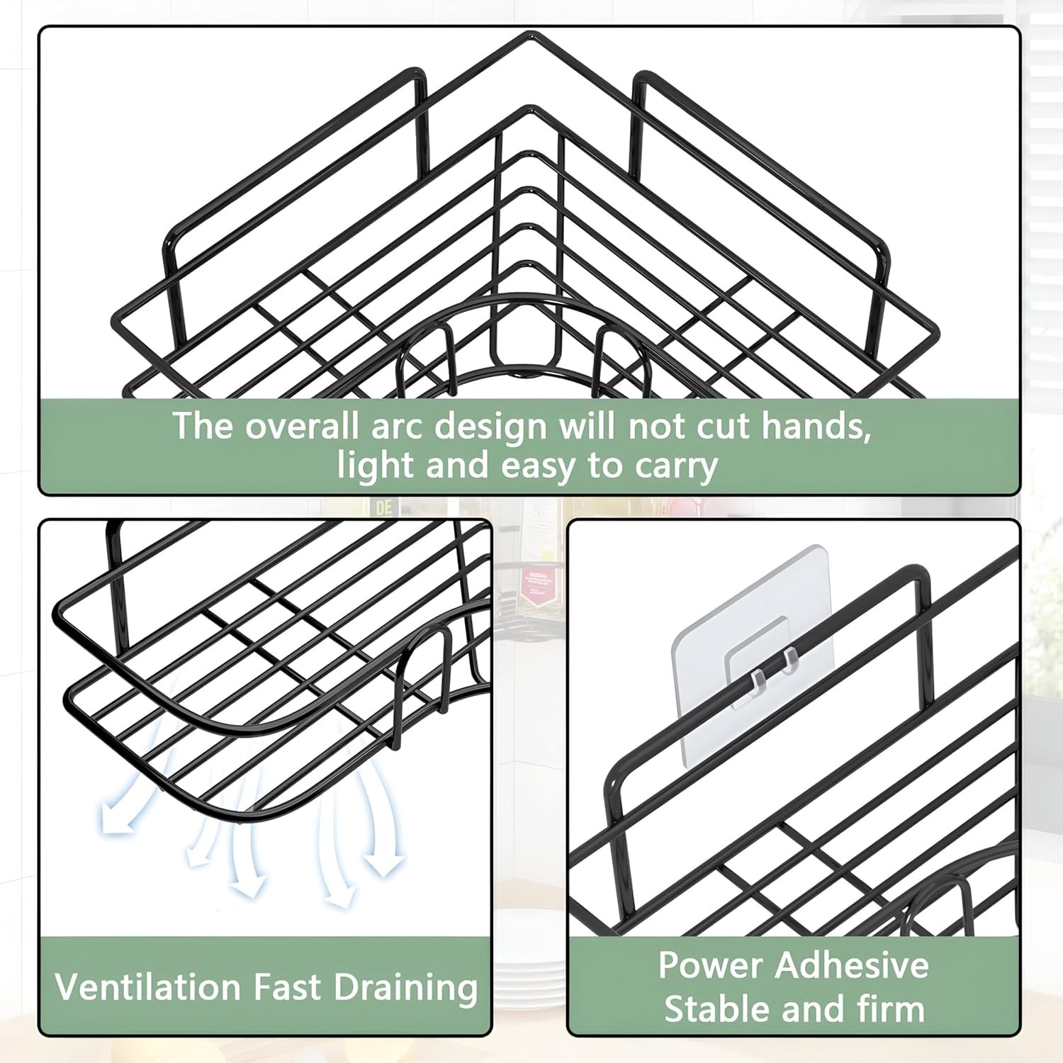 Stronger Adhesive for Easy Installation,No Drilling:Installation only takes a few minutes, requiring no drilling holes or any tools and doing no damage to the wall. Clean the surface, stick the adhesives to the wall, and hang the shower shelves to use. Suitable for smooth surfaces like tiles/marble/glass/metal, but not for uneven surfaces like painted walls.