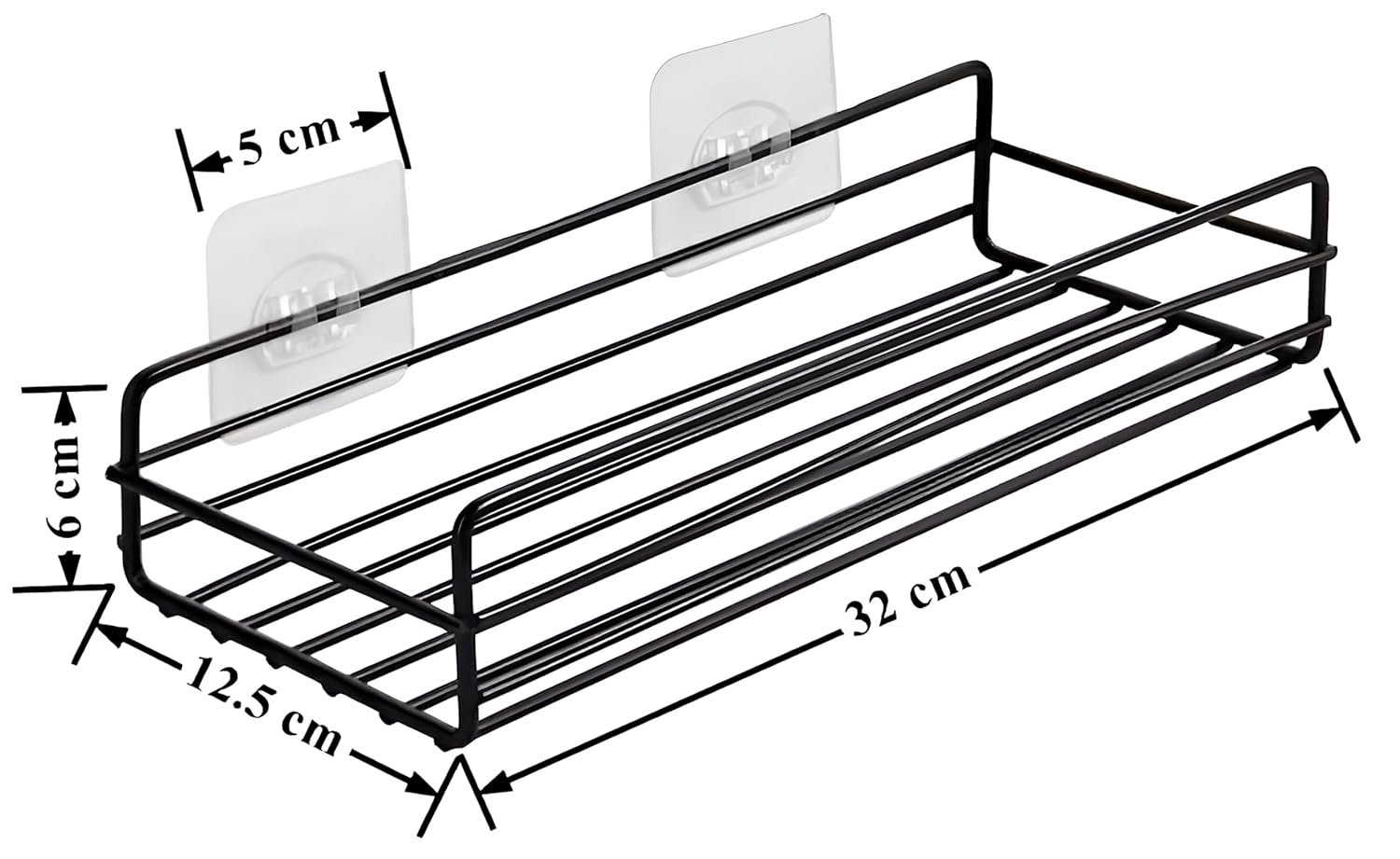 Homeor Multipurpose Self Adhesive Shelf for Bathroom/Kitchen Wall Mounted Rack Shelf with Magic Sticker Bathroom Organizer Without Drill, Pack of 1, Black Powder Coated