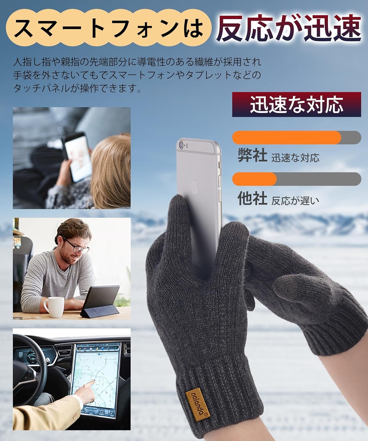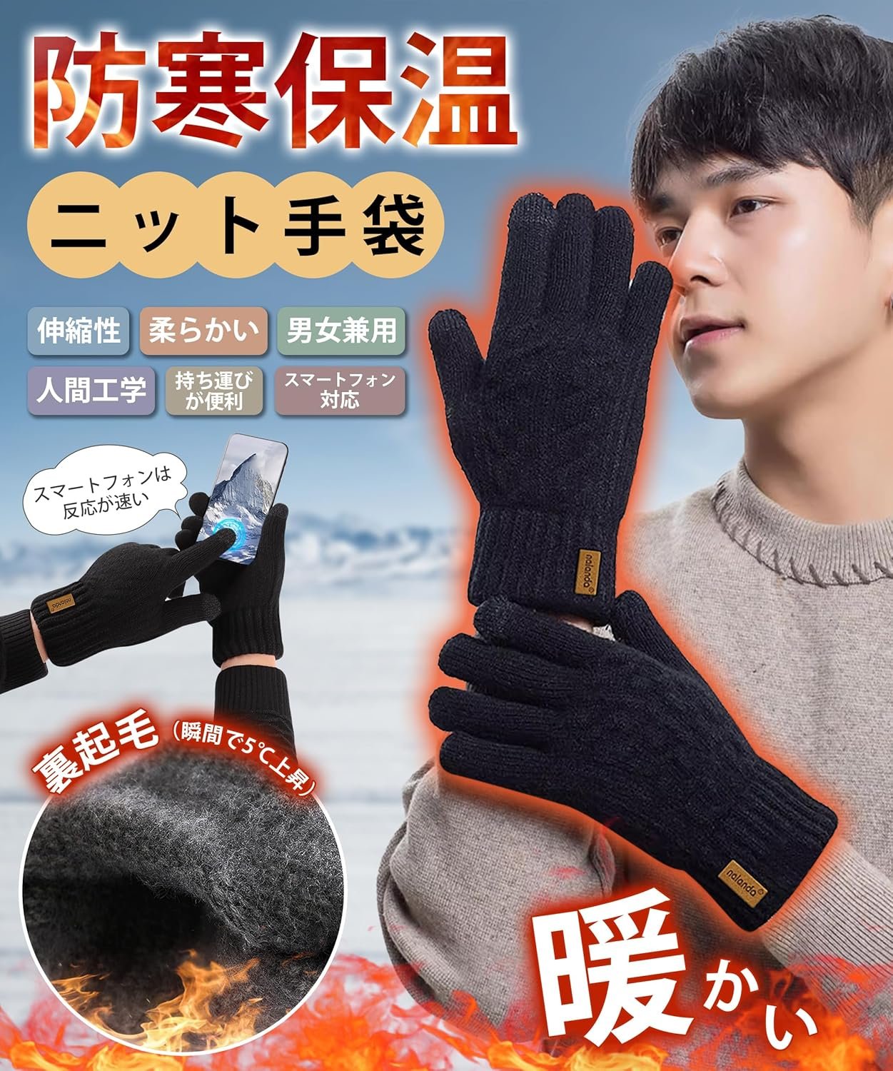HORADON Men’s Winter Gloves, Cold Protection, Knit Gloves, Fleece Lining, Raises 5°C Instantly, Smartphone Compatible, Warmth Soakes, Warmth, Warmth, Warmth, Ergonomic, Warm, Soft, Stretchable,
