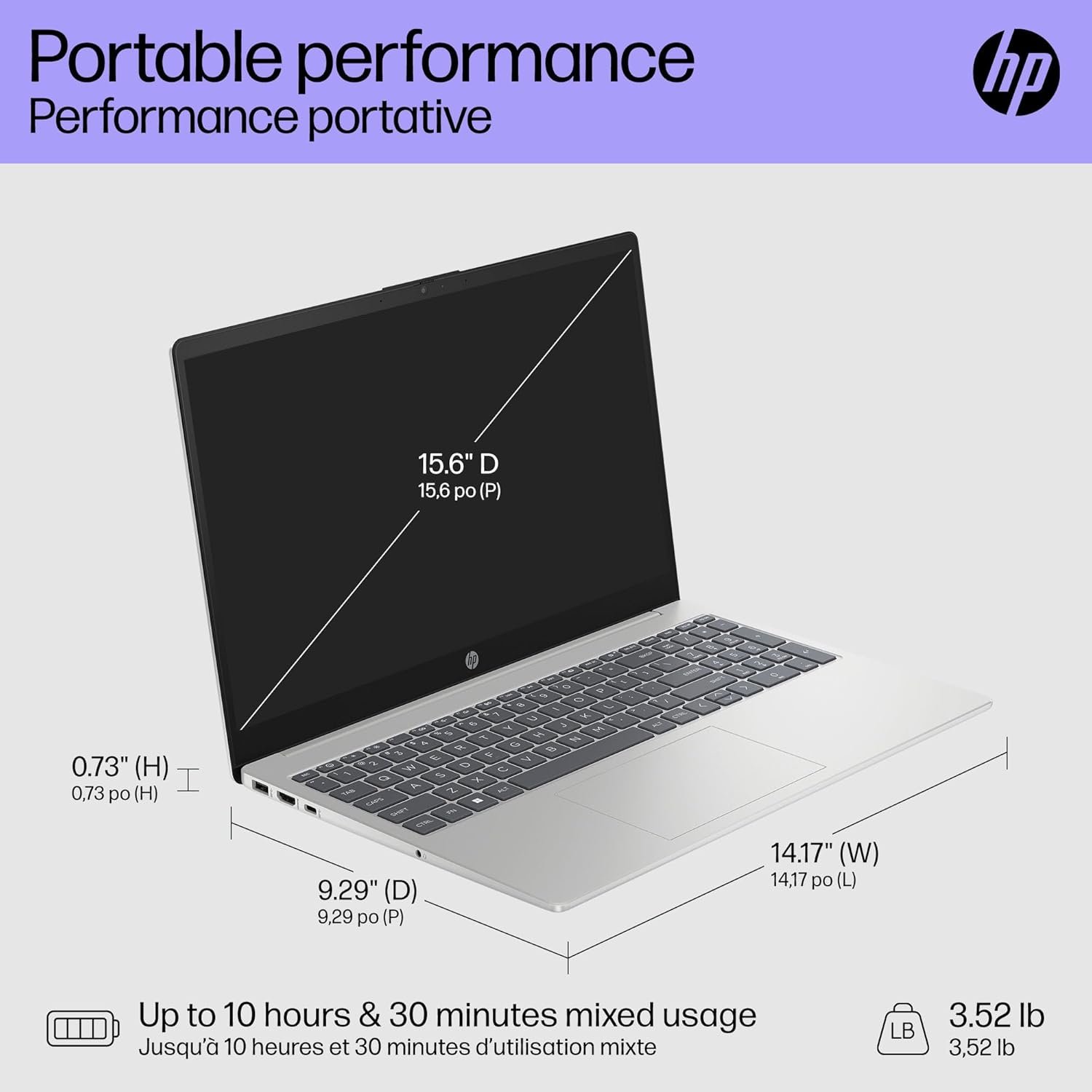 Video chat in vibrant clarity with a high quality camera you can close when not in use, keeping you safe online. With dual array digital microphones and advanced noise reduction software you will be able to get every point across. Get your hustle on with the reliable processing power of an AMD processor, long-lasting battery life and HP Fast Charge to help you stay in the zone longer. This HP 15.6 inch laptop was built for wherever your day takes you. Enjoy a great view of your favorite content with wide viewing angles, vibrant resolution and a 85% screen-to-body ratio. Connect with your crew or any of your connected devices with plenty of ports. The HP 15.6 inch Laptop comes with a 45 W Smart AC power adapter and goes from 0 to 50% charge in 45 minutes. Plus, made with the planet in mind, this HP notebook is EPEAT Gold registered and ENERGY STAR certified. This HP computer comes with 1-year limited hardware warranty and 90-dayslimited technical support for software and initial setup with 24-hour, 7 days a week web support when shipped from and sold by Amazon.ca.