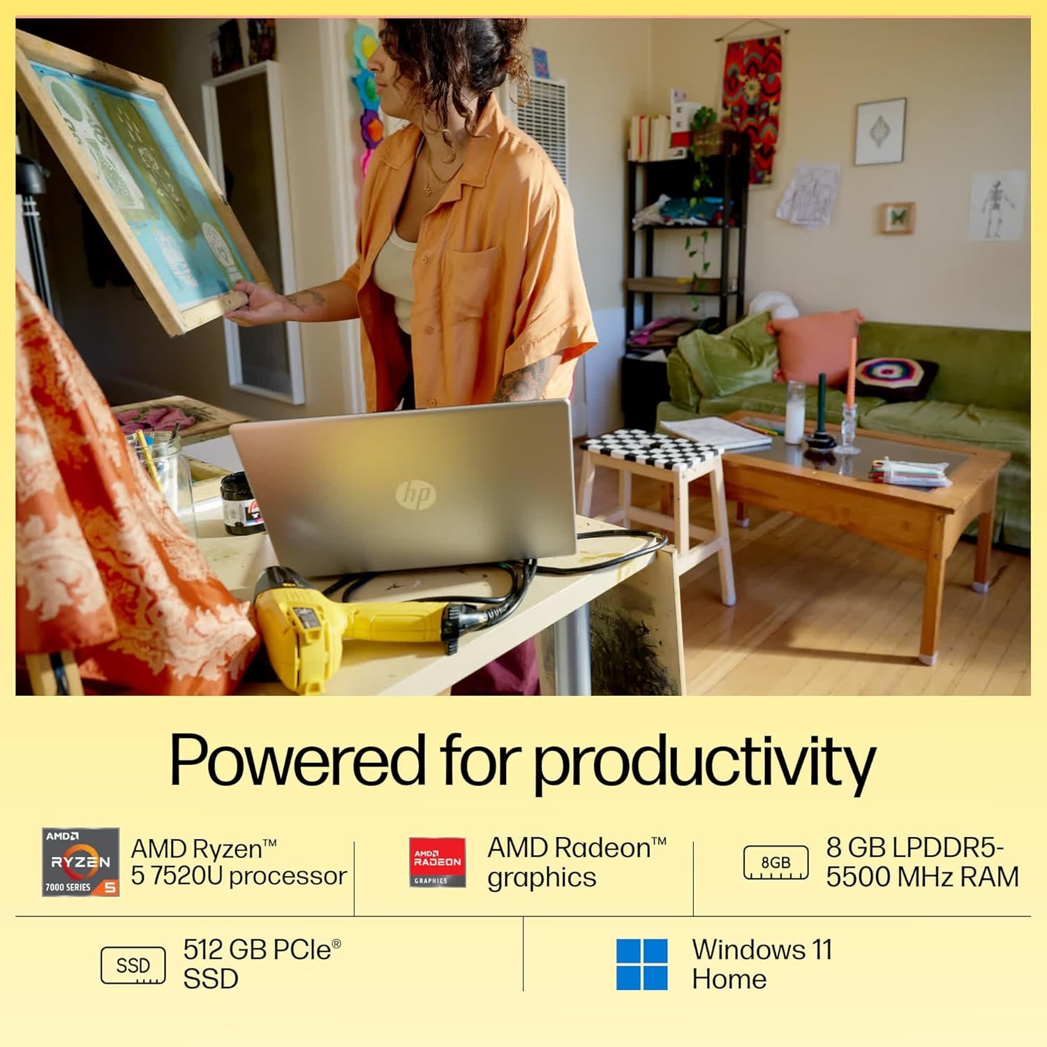 HP 15, AMD Ryzen 5 7520U (8GB LPDDR5, 512GB SSD) Anti-Glare, FHD,15.6-inch (39.6 cm) Win 11, Office 21, FHD Camera with Privacy Shutter,15s-fc0155AU