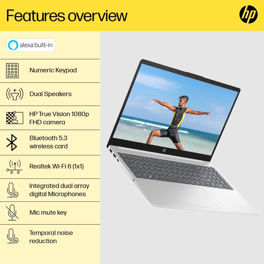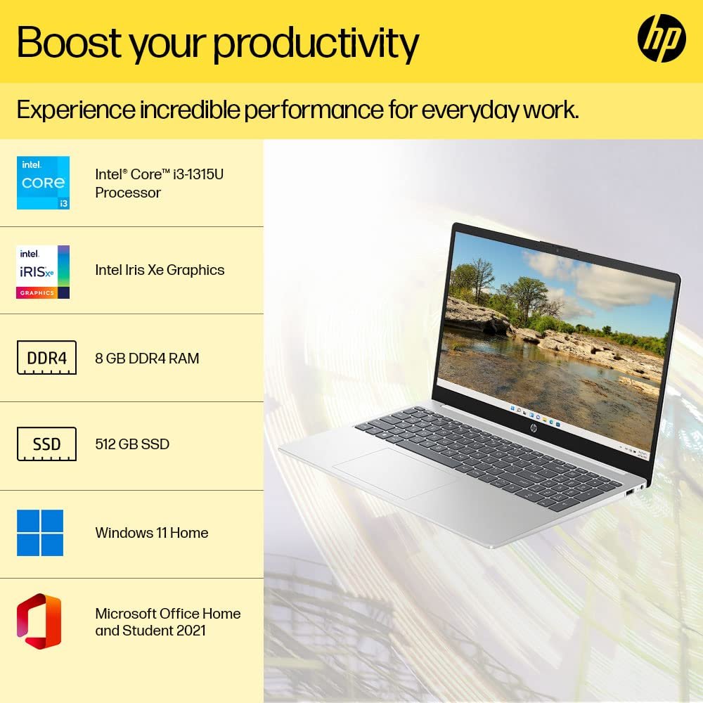 HP Laptop 15, 13th Gen Intel Core i3-1315U, 15.6-inch (39.6 cm), FHD, 8GB DDR4, 512GB SSD, Intel UHD Graphics, 1080p FHD Camera w/Privacy Shutter, Dual Speakers (Win 11, White, 1.6 kg),