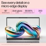 【Micro-edge display】Work and view comfortably on a 16″ WUXGA display with anti-glare, offering clear and vivid visuals in any lighting condition.
