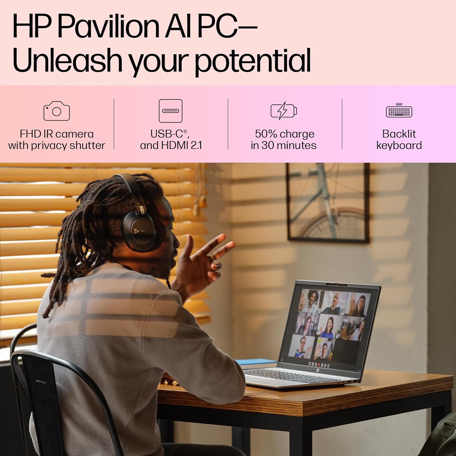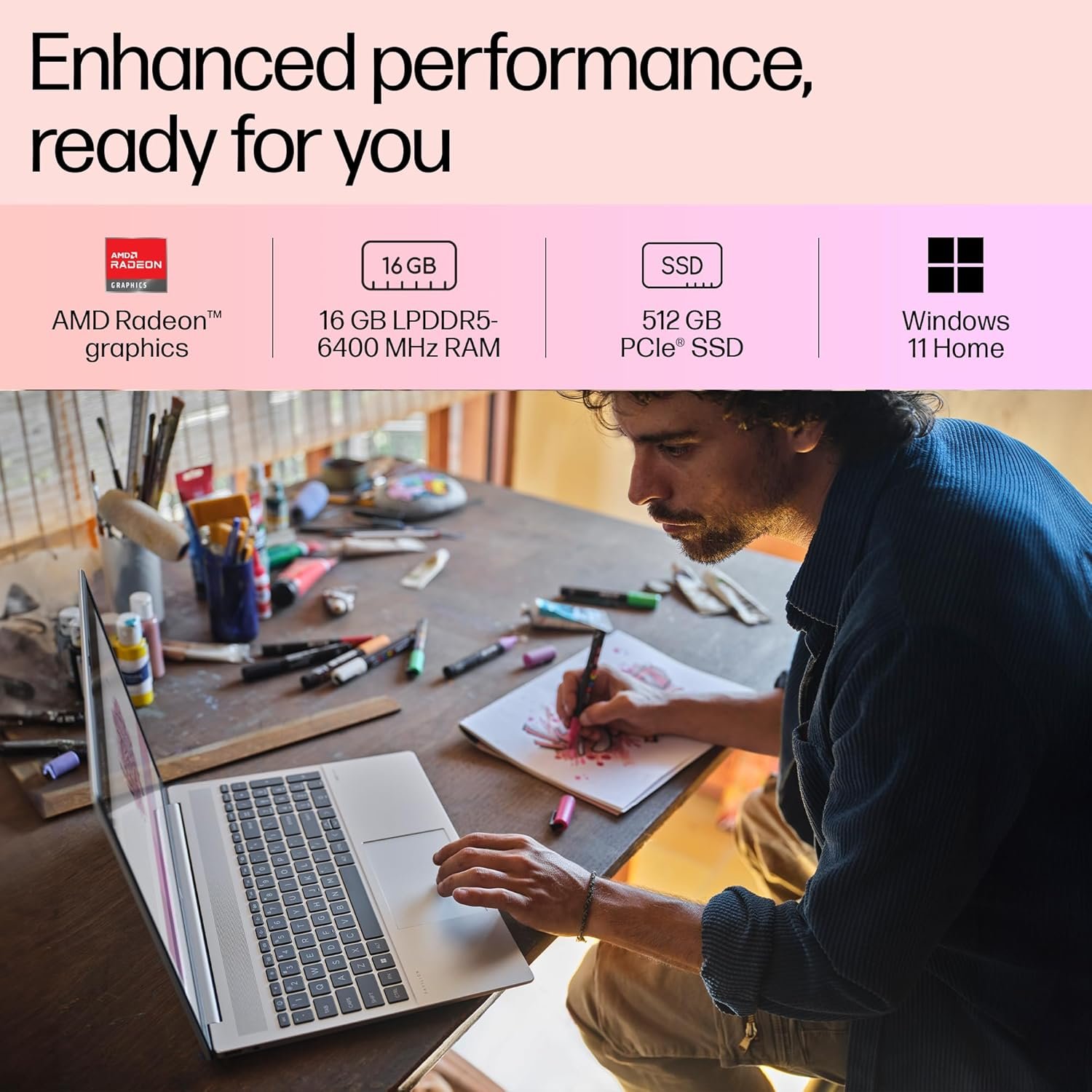 HP Pavilion, AMD Ryzen 5 8540U, 16GB LPDDR5, 512GB SSD, (Win 11, Office 21, Silver, 1.79kg), IPS, Anti-glare, 16-inch(40.6cm), WUXGA Laptop, AMD Radeon graphics, 1080p FHD camera, Backlit KB, ag0019AU
