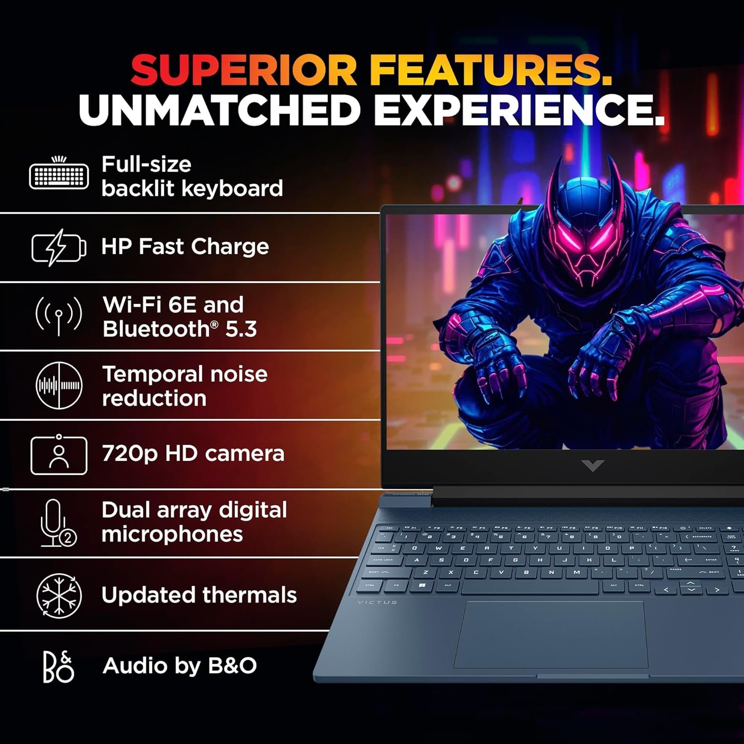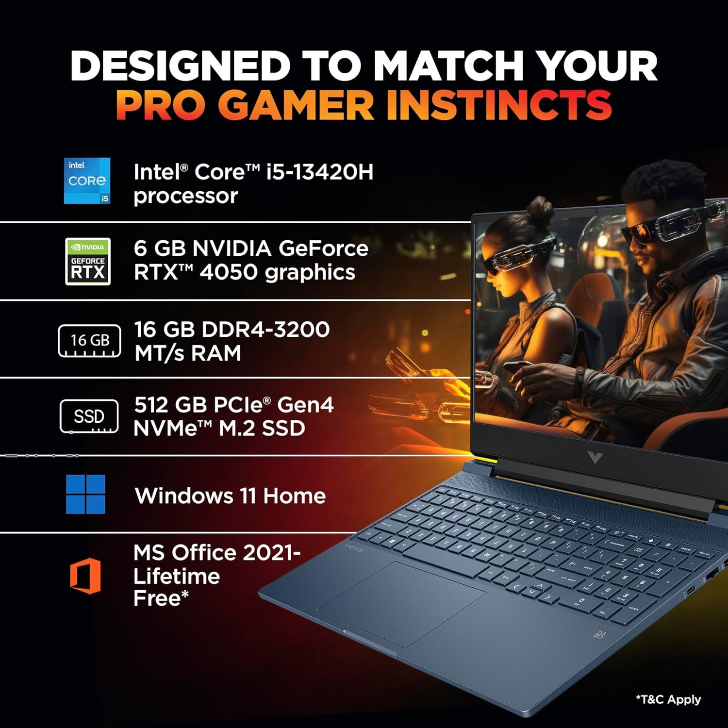 HP Victus, 13th Gen Intel Core i5-13420H, 6GB NVIDIA RTX 4050 Gaming Laptop (16GB DDR4, 512GB SSD),144Hz, 9ms, IPS, 15.6”/39.6cm, FHD, Win11, Office21, Blue, 2,29kg, Backlit Kb,HD Camera,fa1278TX