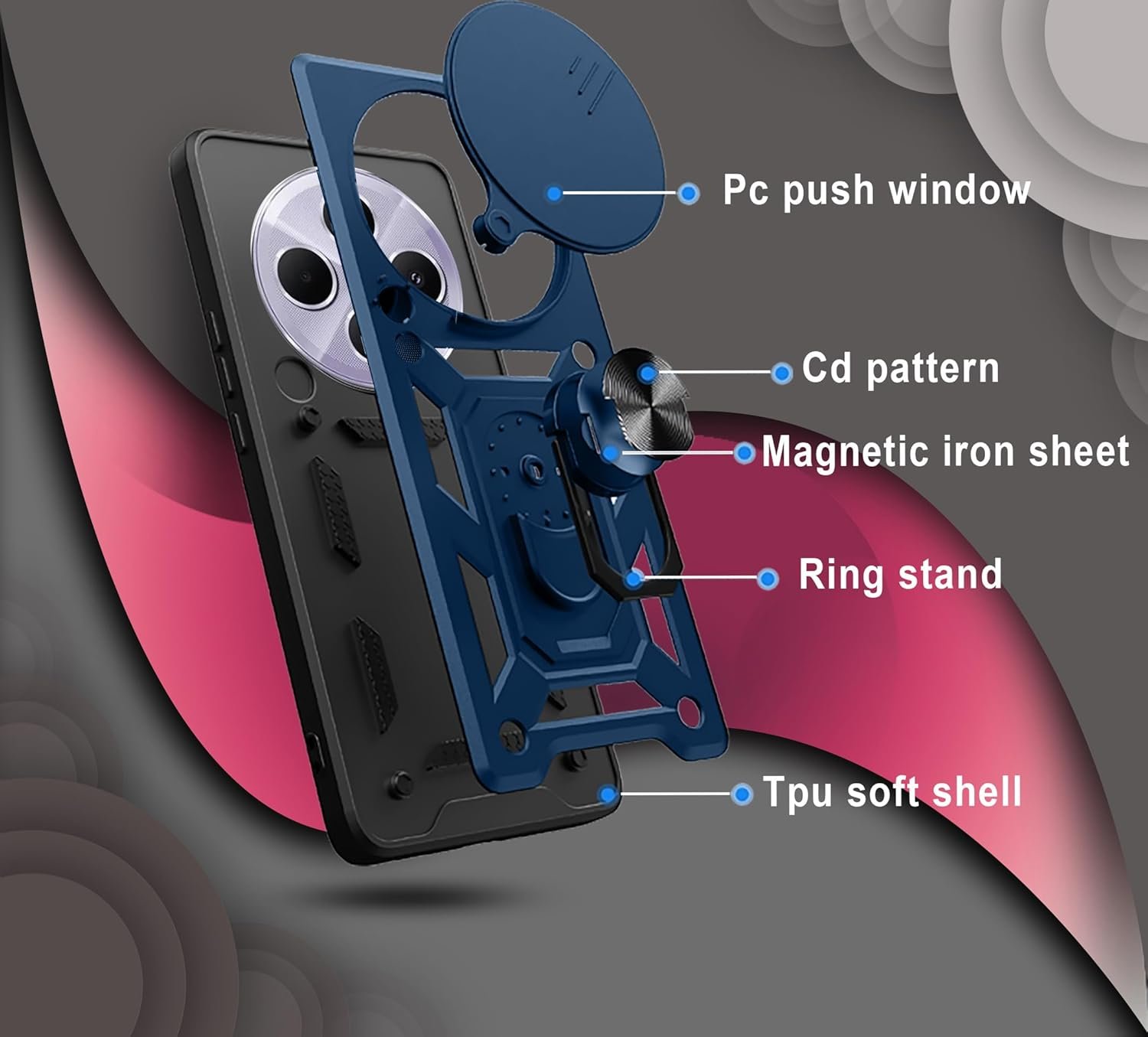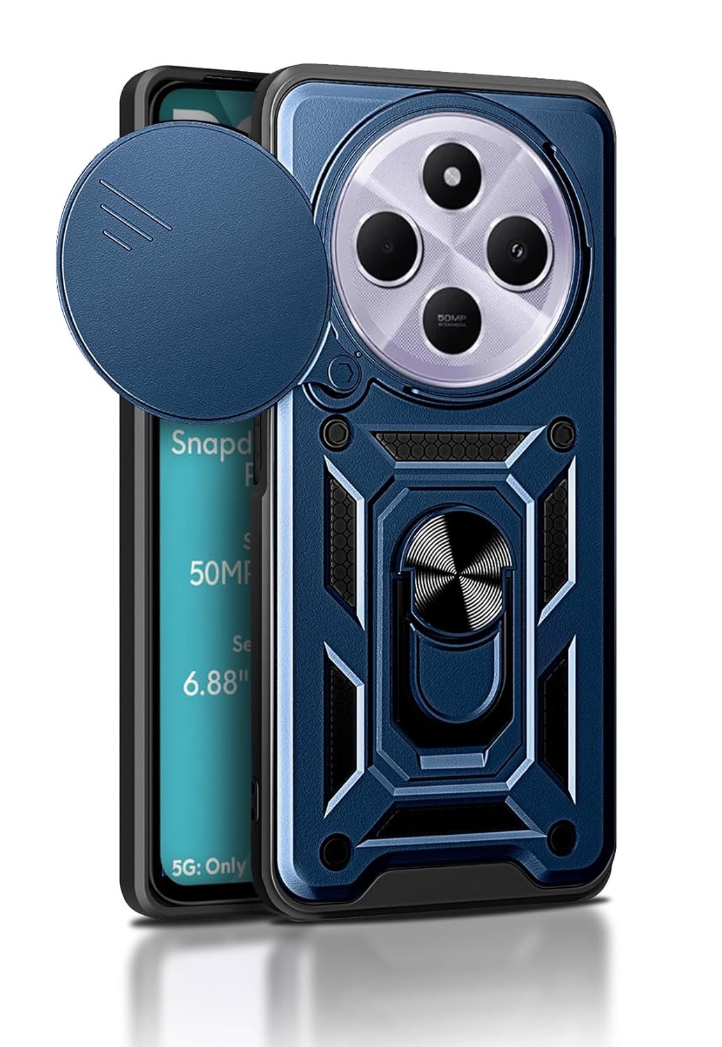 Hupshy Polycarbonate Redmi A4 5G Back Cover Case Sliding Camera Window Shock Proof Thunder Case, Dual Layer Hybrid Armor Kickstand Back Cover Case for Redmi A4 5G (Blue)