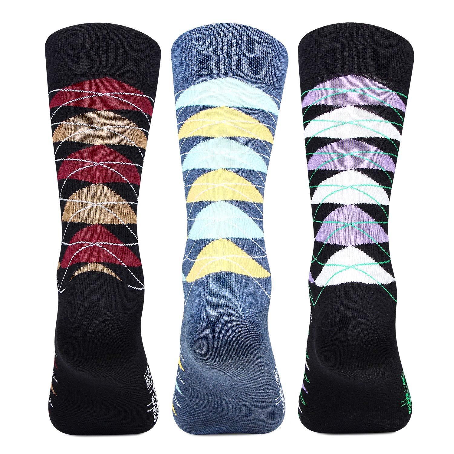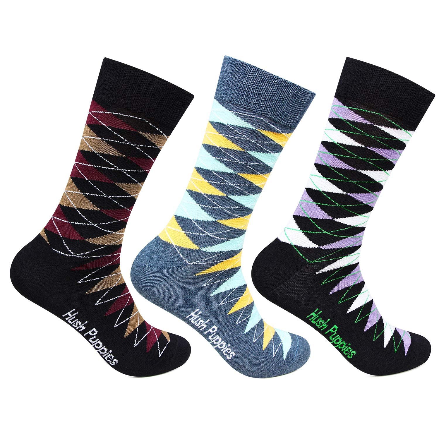 Hush Puppies Men’s Cotton Calf Length Socks (BROHPM-01B-PO3_Multicolor_Free Size)