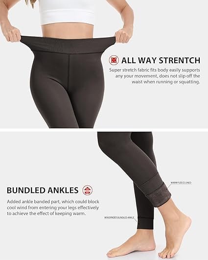 BLINKIN Women’s Skinny Fit Mid Rise Soft Touch Thermal Skinny Tights – Ultimate Warm Fleece Leggings, Thermal Winter Tights