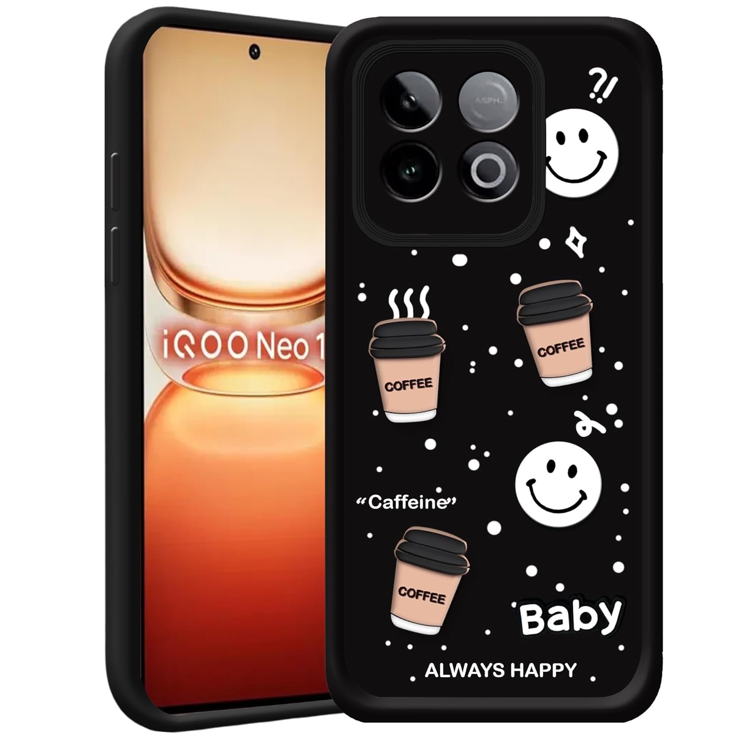 Inktree Back Case Cover Compatible for Iqoo Neo 10 5G | Cute Fun Cartoon 3D Ball | Coffee Silicone Case | Camera Protection | Body Protection | Shock Proof | Color Black