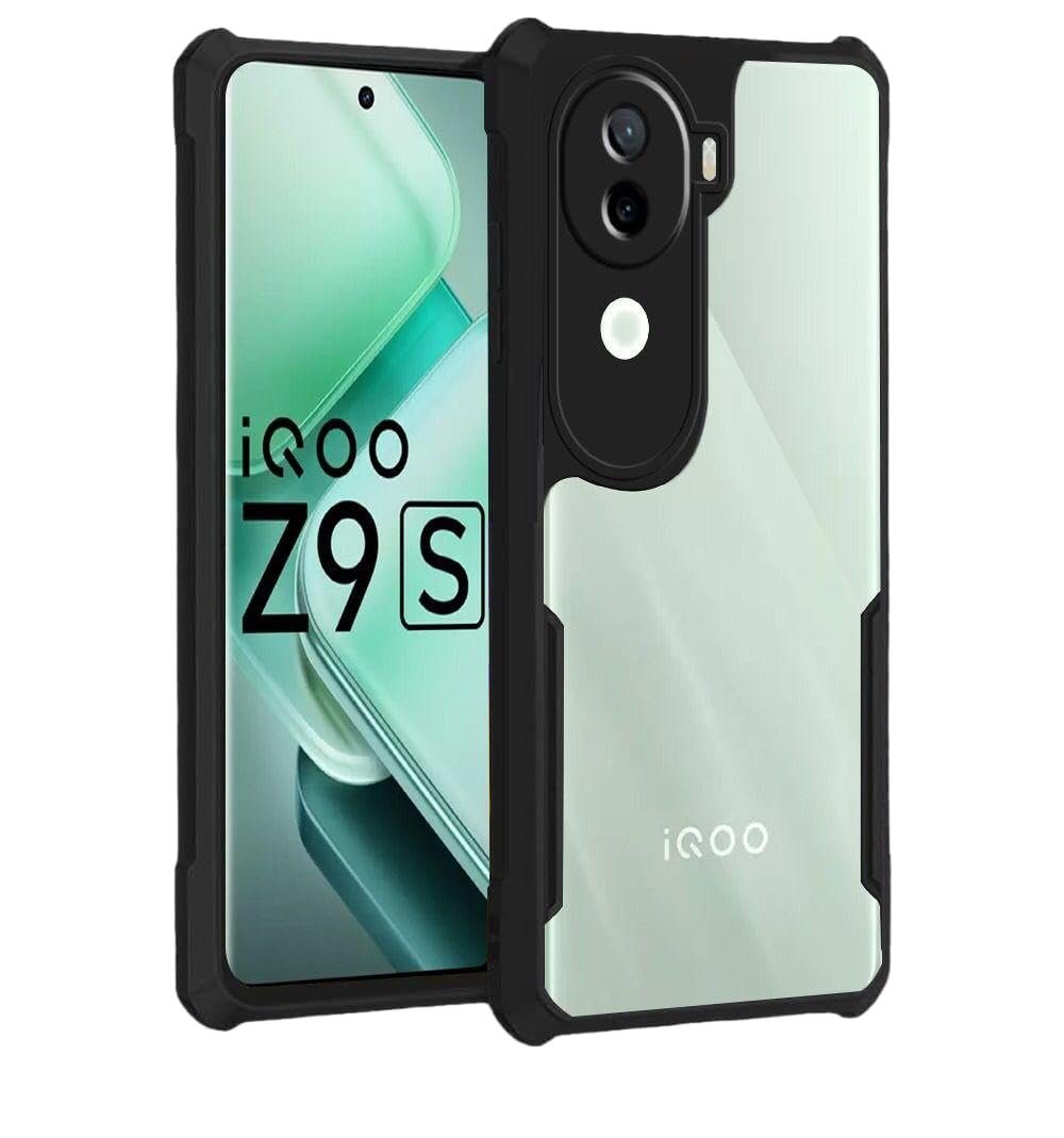 Inktree iQOO Z9S 5G Back Cover | Camera Protection Shockproof Bumper | Acrylic Crystal Clear 360 Degree Protection (Black)