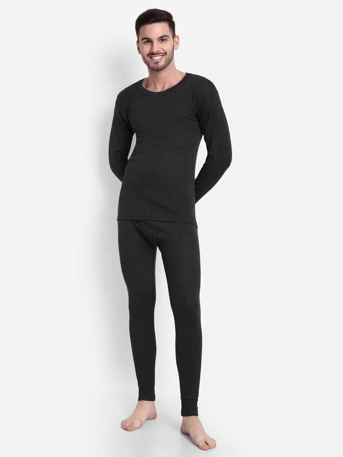 Inner Element Men’s Thermal Set of Round Neck Top + Pant, Premium Streachable Winter Innerwear