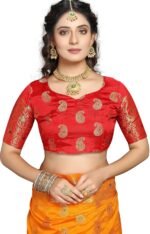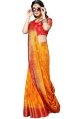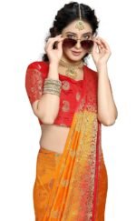 - This saree with bright color and design makes for versatile wear for both casual and formal occasions.