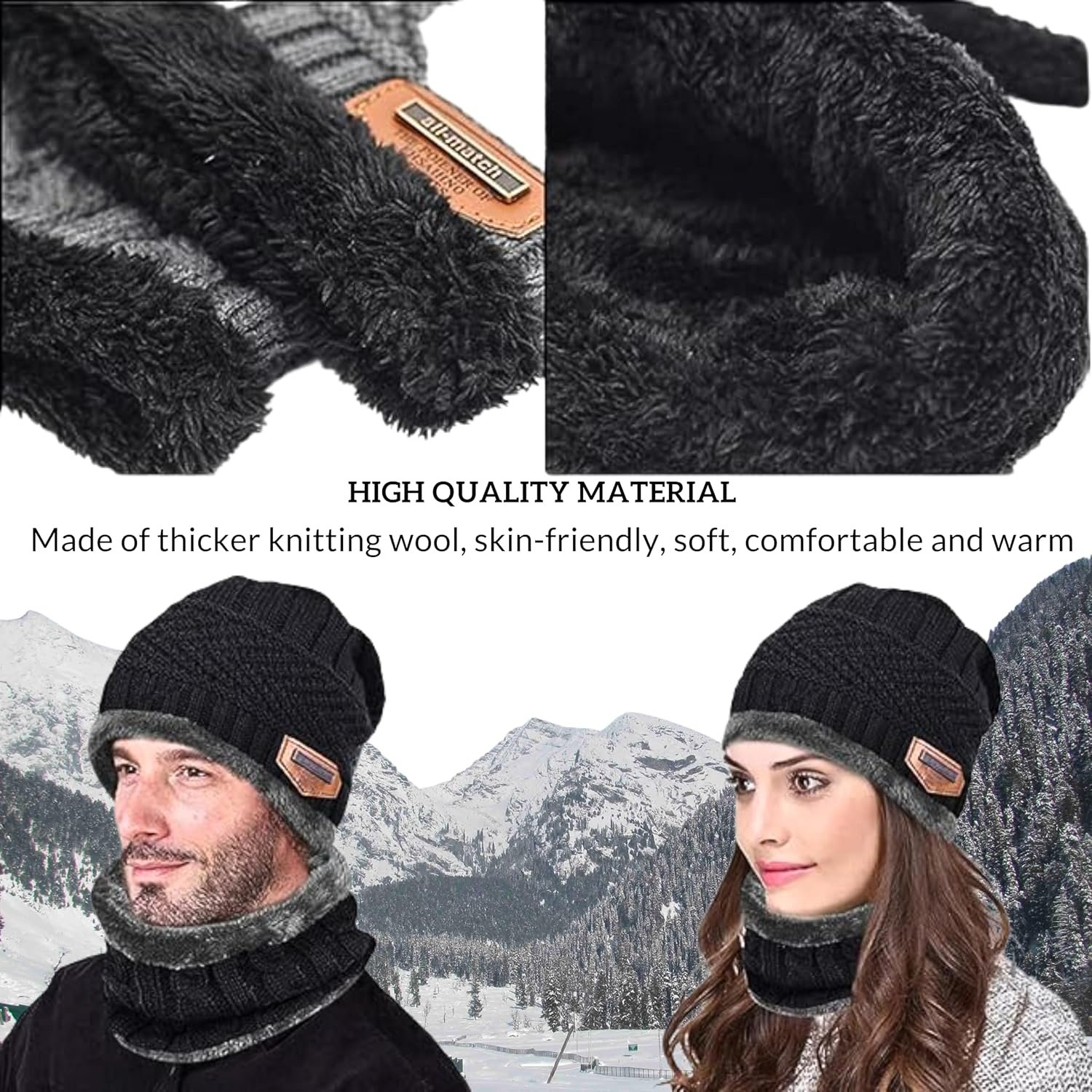 Fit Type: Fitted Fleece Lined for Warmth and Comfort- The winter hat, scarf, and gloves set features a soft thick knit outer layer, the beanie hat and scarf are lined with high-quality fleece to keep out wind and chill!