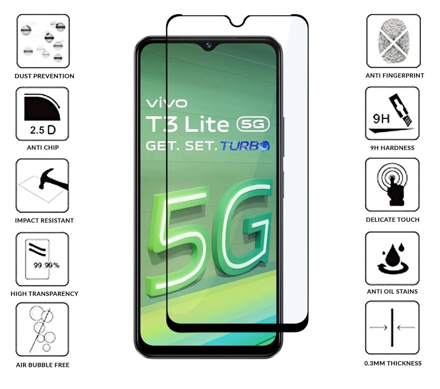 JGD PRODUCTS for Vivo T3 Lite 5G, iQOO Z9 Lite 5G Tempered glass with Full Edge Protection and Easy Installation Kit