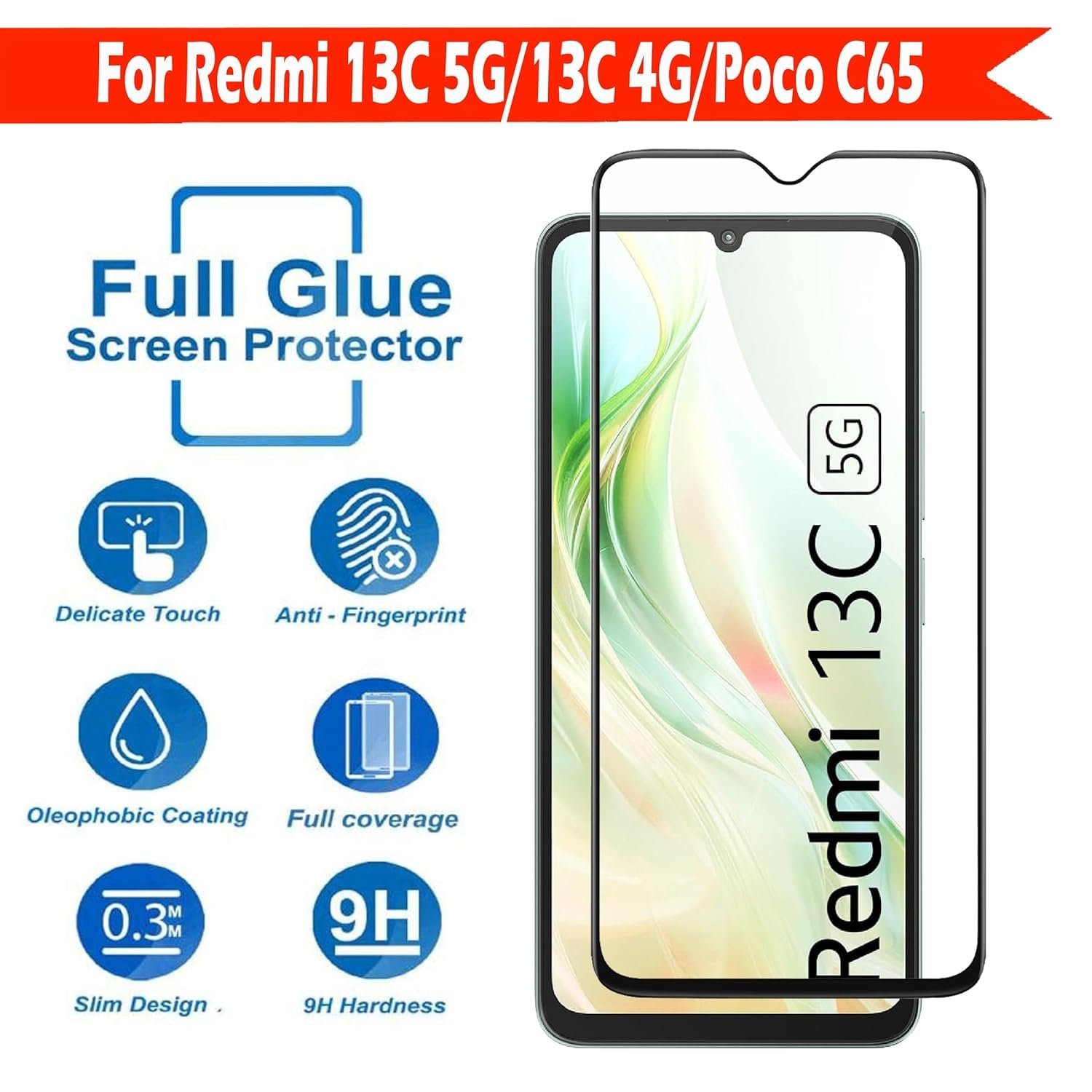 JGD PRODUCTS for Xiaomi Redmi 13C 5G, Redmi 13C 4G, Poco C65 Tempered glass with Full Edge Protection and Easy Installation Kit