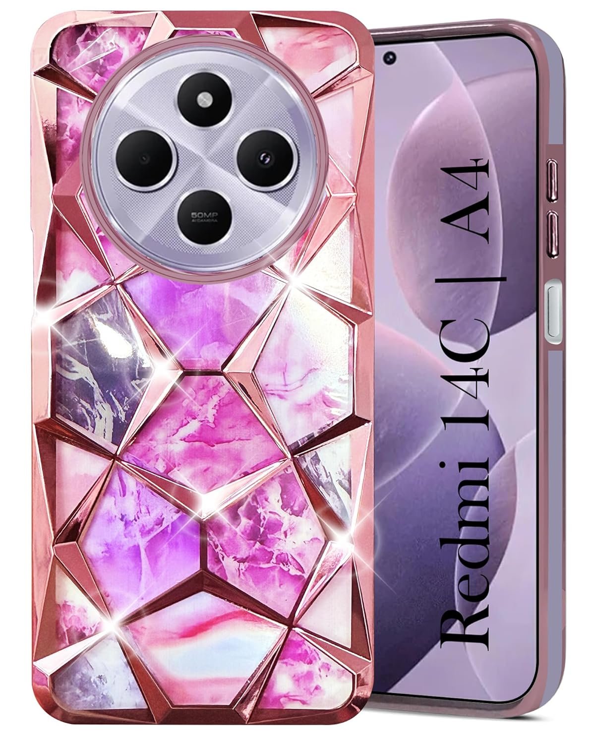 Jkobi Back Cover Case Compatible with Redmi A4 5G | Xiaomi Redmi 14C for Girls (Dual Design Glitter Sparkle and Detachable Diamond Print Case | Soft and Flexible)